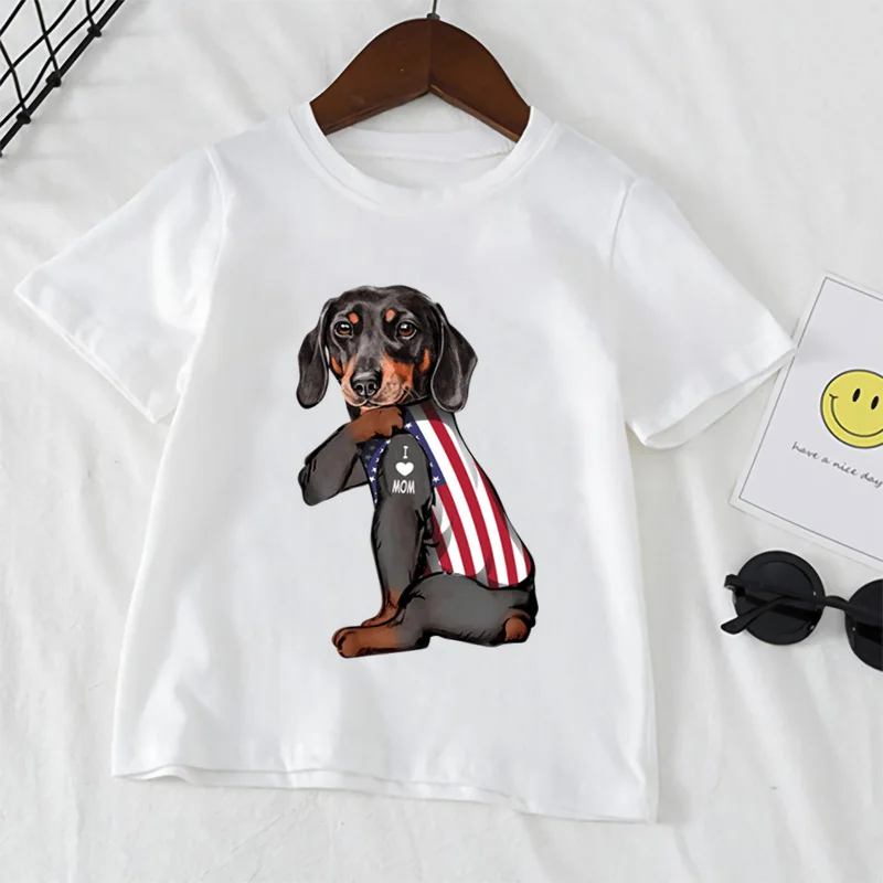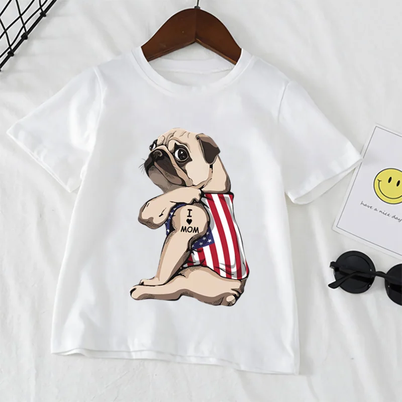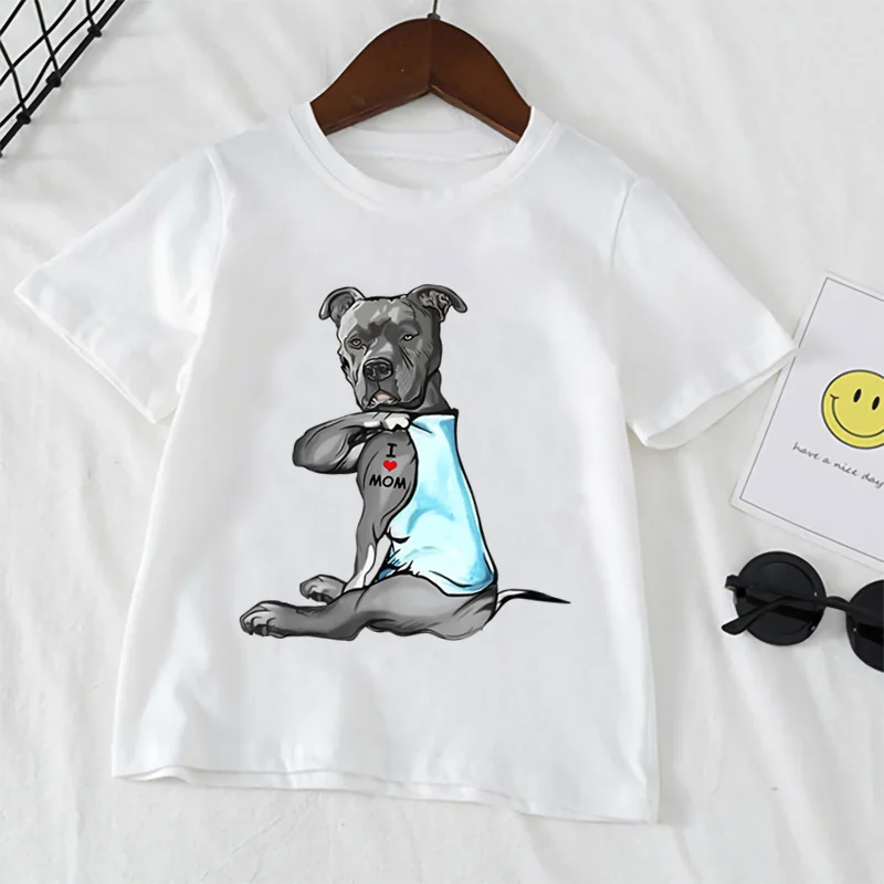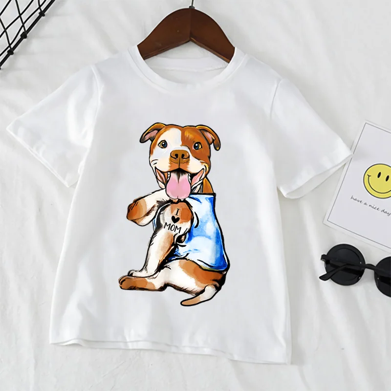 Детские футболки с мультяшным принтом собак I Love Mom в стиле Харадзюку, милые футболки для мальчиков и девочек, модные детские футболки с коротким рукавом YKP116