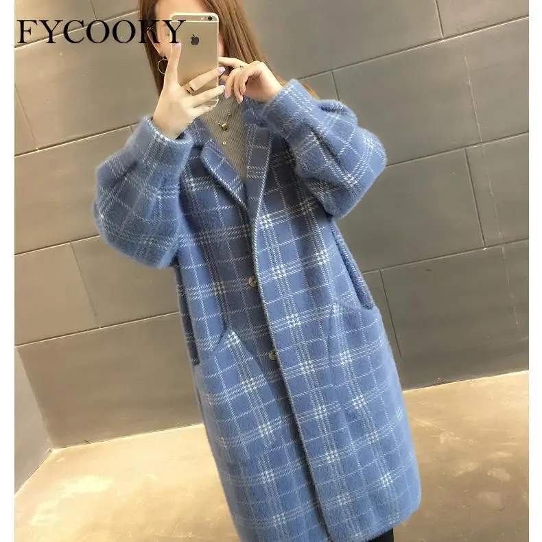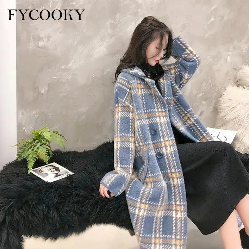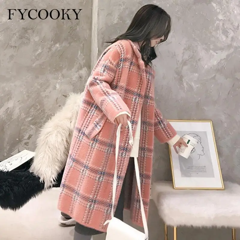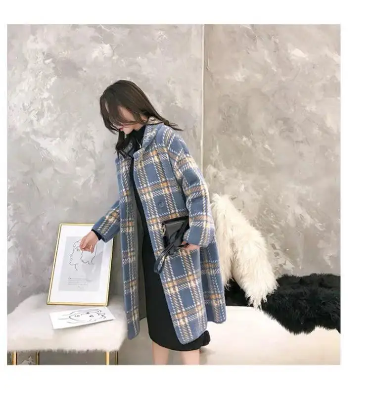 Женское шерстяное пальто в клетку, свободного покроя, в Корейском стиле