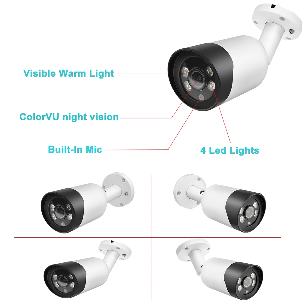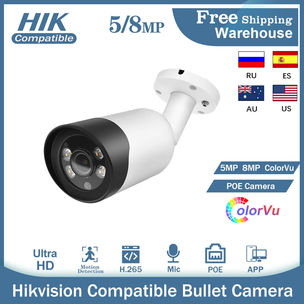 Совместимая с Hikvision IP-камера 5MP 8MP ColorVu POE Встроенный микрофон H.265 IR 50m Водонепроницаемая камера видеонаблюдения Bullet