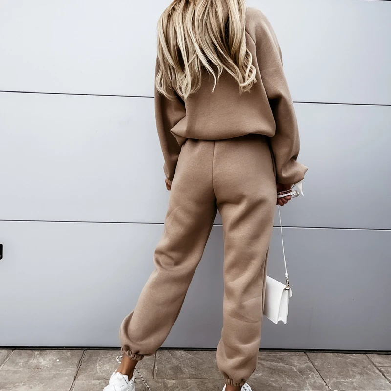 Женские флисовые спортивные костюмы 2021, зимний Повседневный свитш...