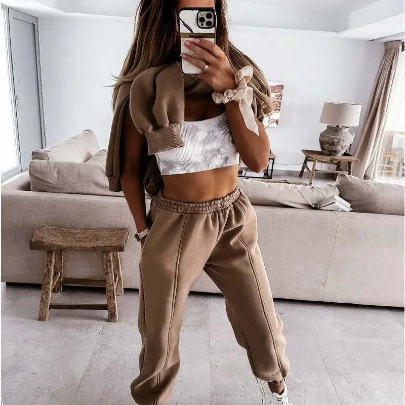 Комплект из 2 предметов свитера пуловер толстовки и брючный костюм 2021, спортивные штаны, брюки, Осенние костюмы, женский спортивный комплект