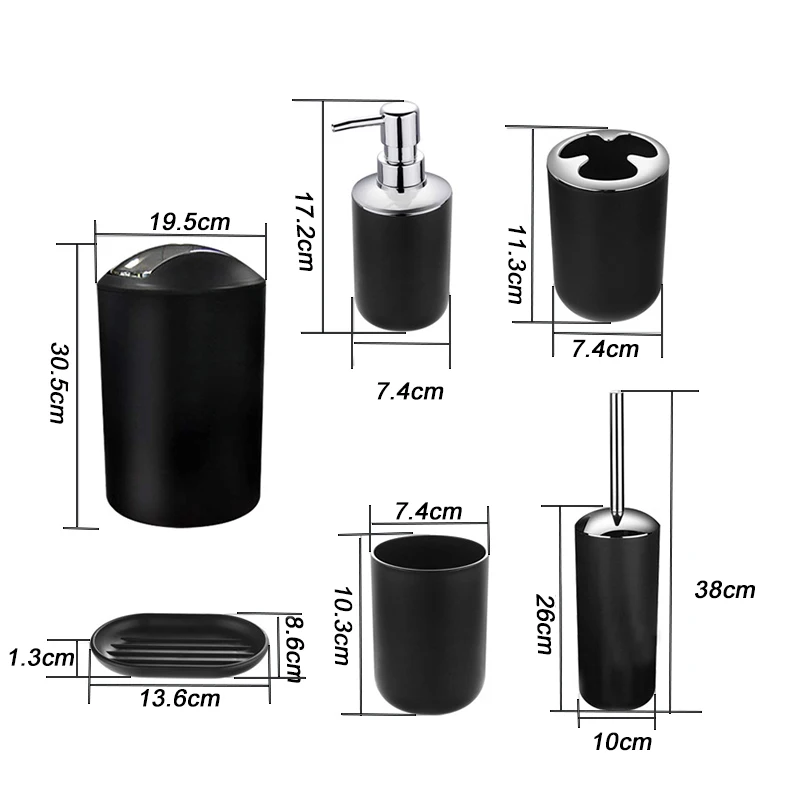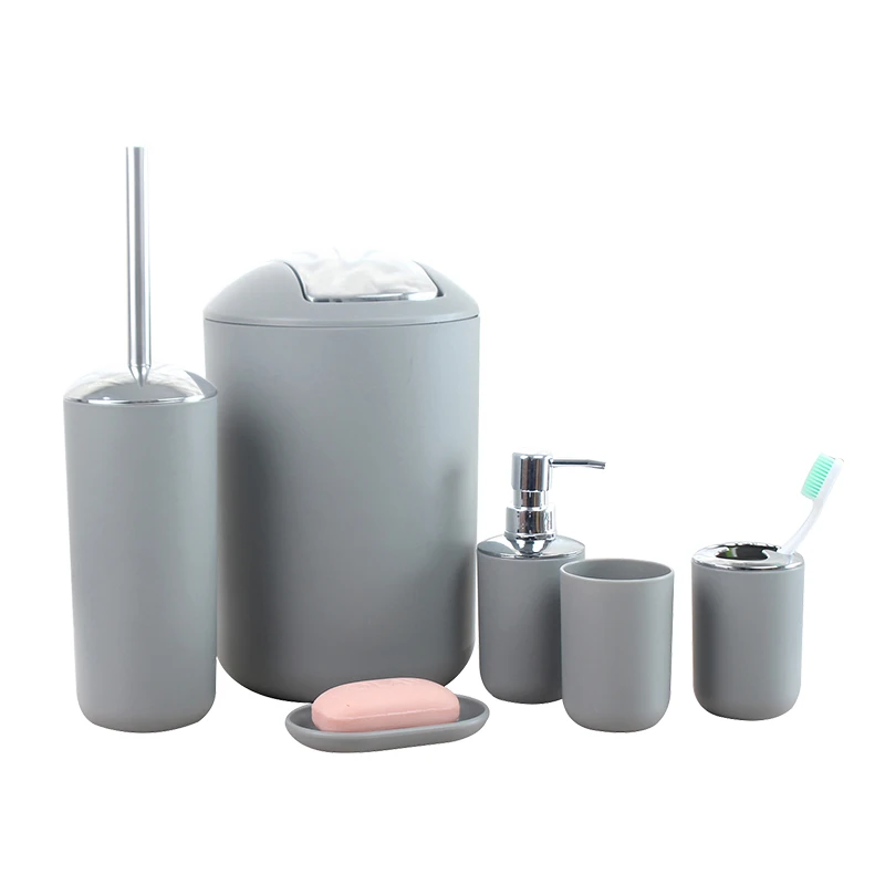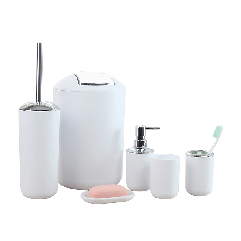 Набор аксессуаров для ванной комнаты, 6 шт., пластиковые инструменты для мытья, зубная щетка, чашка, мыльница, тарелка, щетка для туалета, мусорная корзина