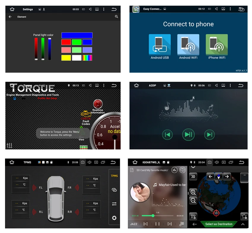 С помощью приложения Easy-Connect, через usb-кабель для зарядки и Bluetooth, вы можете отображать экран телефона android, например, главное меню, фотографии/видео, онлайн-карты navi. Также вы можете управлять телефоном Android на этом устройстве. Поддерживает большинство телефонов Android.