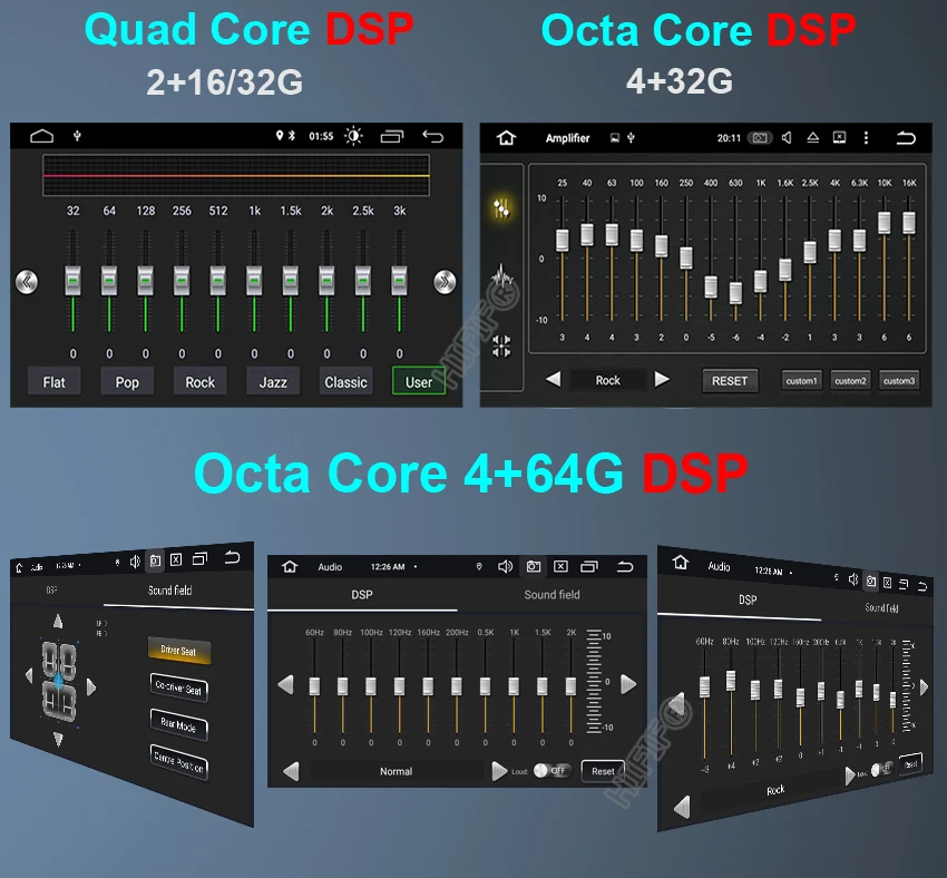 Поддержка эквалайзера 18 эквалайзеров для музыки, видеосъемки альбомов, названия песен, имени певца, лирической информации от проигрывателя по умолчанию.