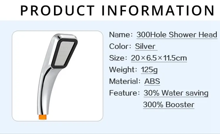 Насадка для душа с экономией воды под давлением, 300 отверстий
