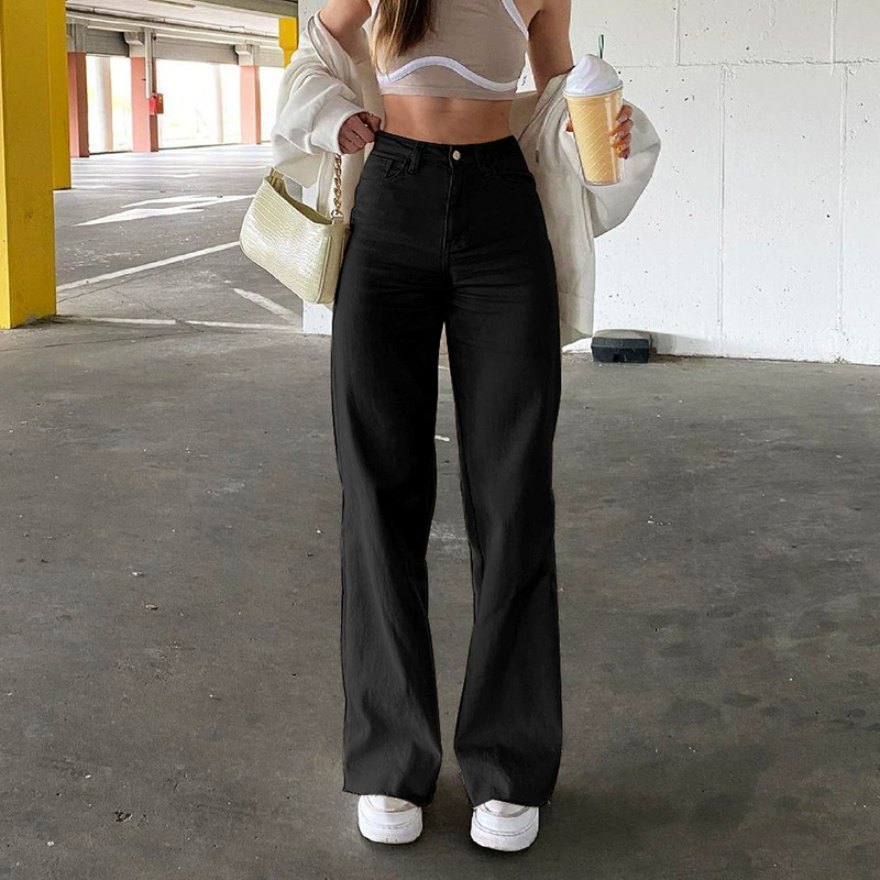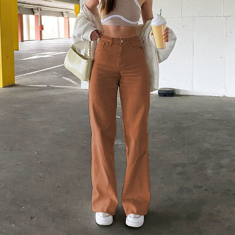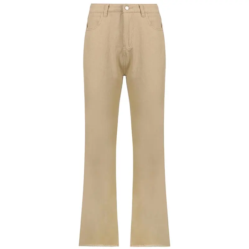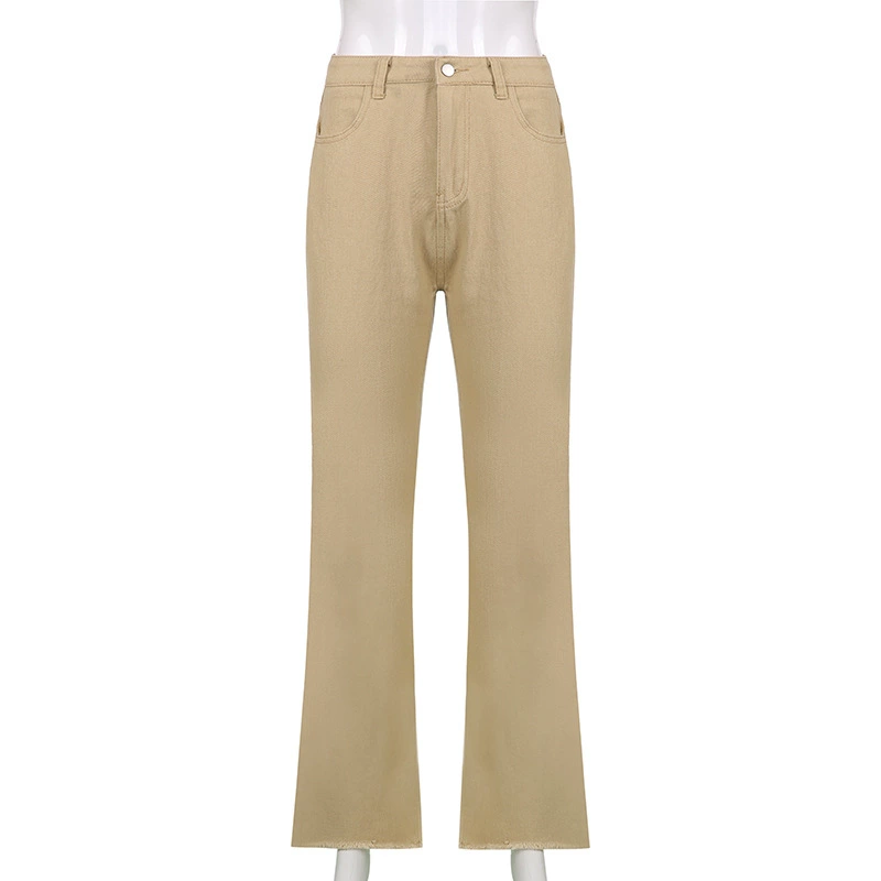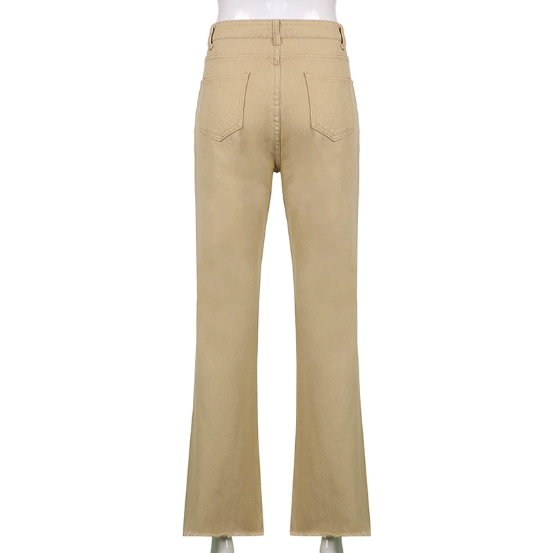 Женские прямые джинсы цвета хаки с высокой талией, эластичные джинсовые брюки-багги для мам, Повседневные Удобные Свободные модные брюки с бахромой