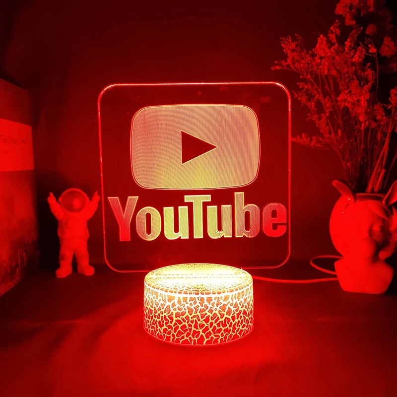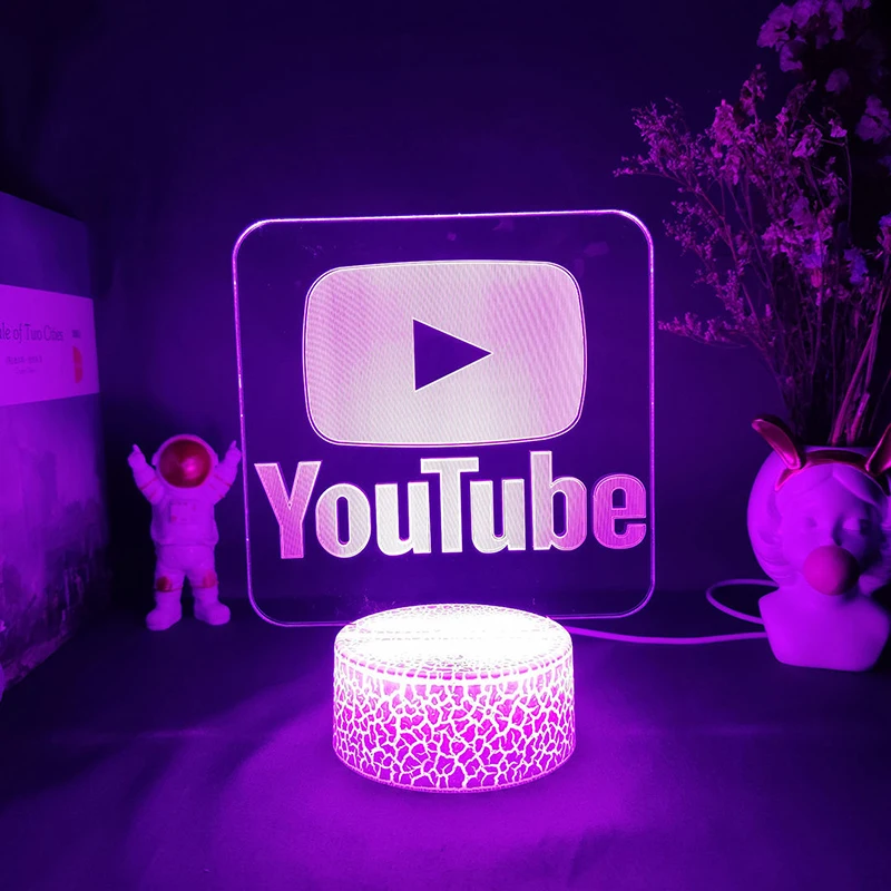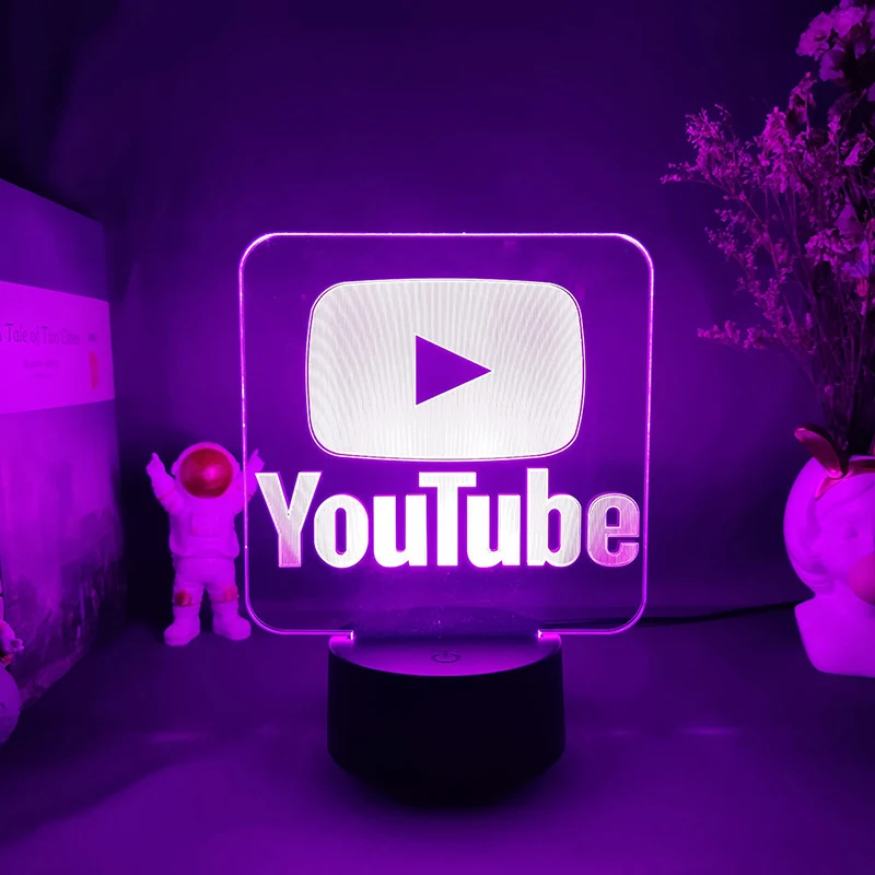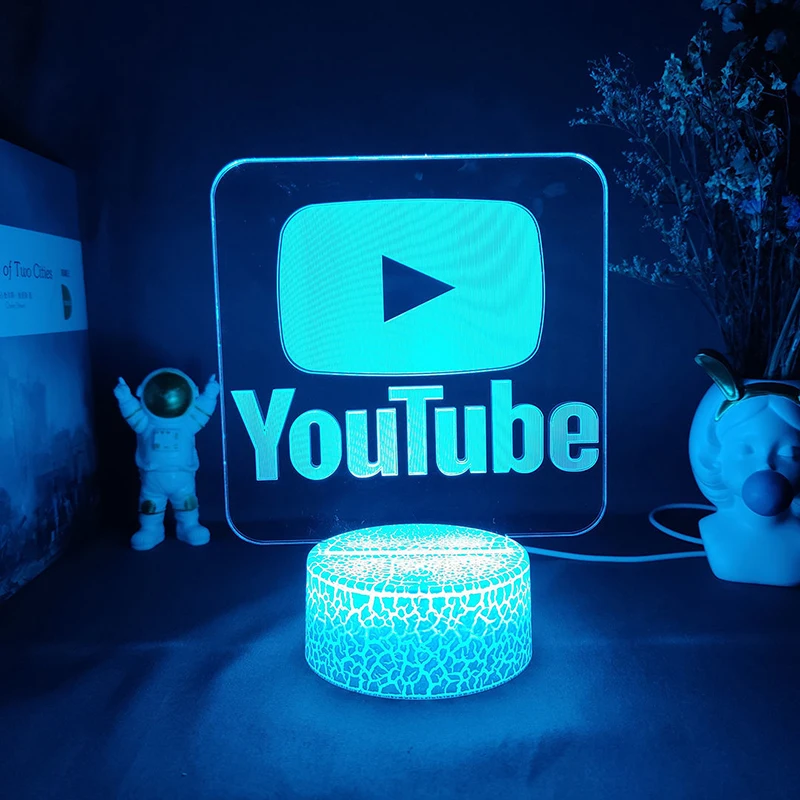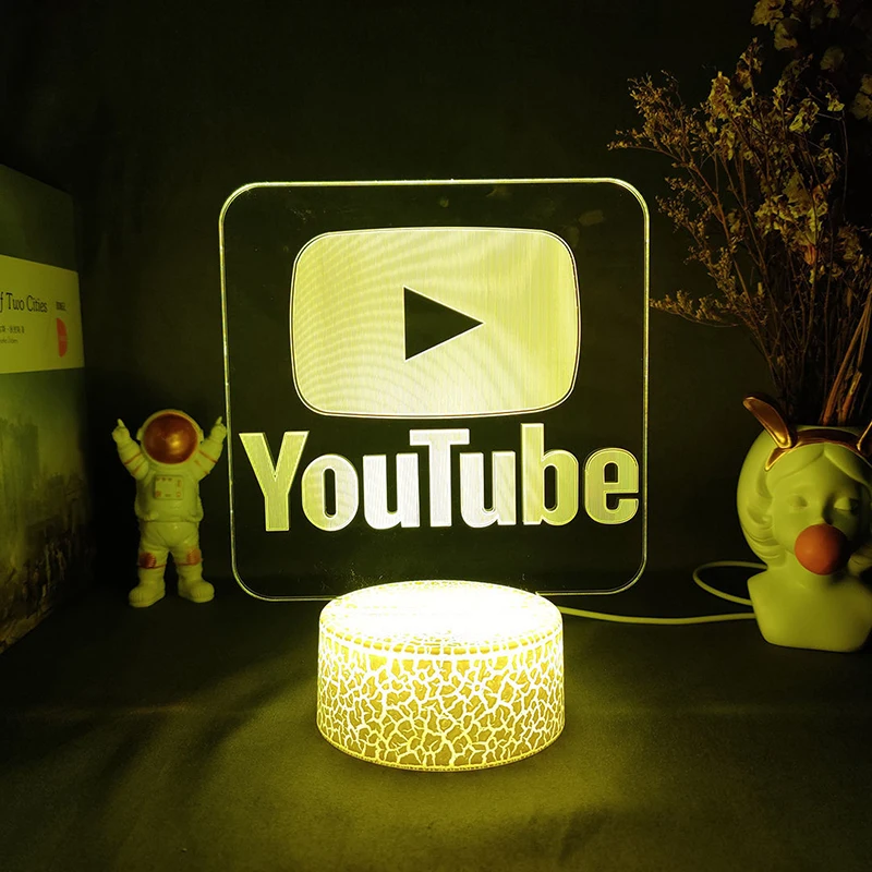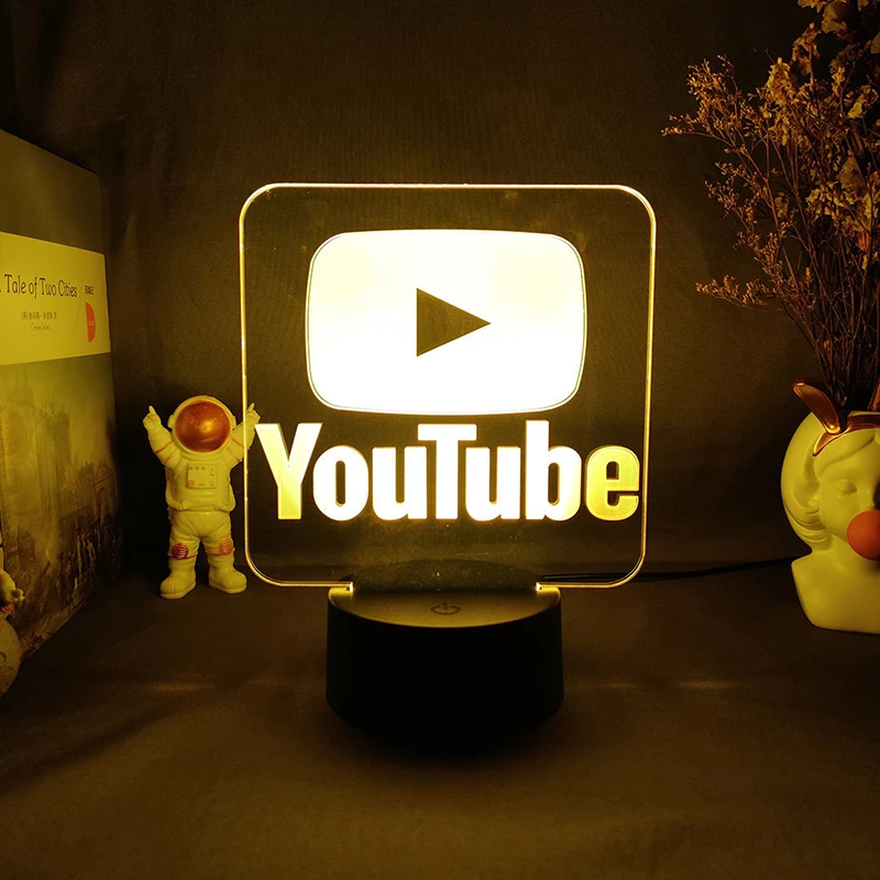 Акриловая Иллюзия 3D светодиодный ночник Популярный Логотип Youtube фигурка лампа для детской спальни декор стол детский подарок на день рождения свет