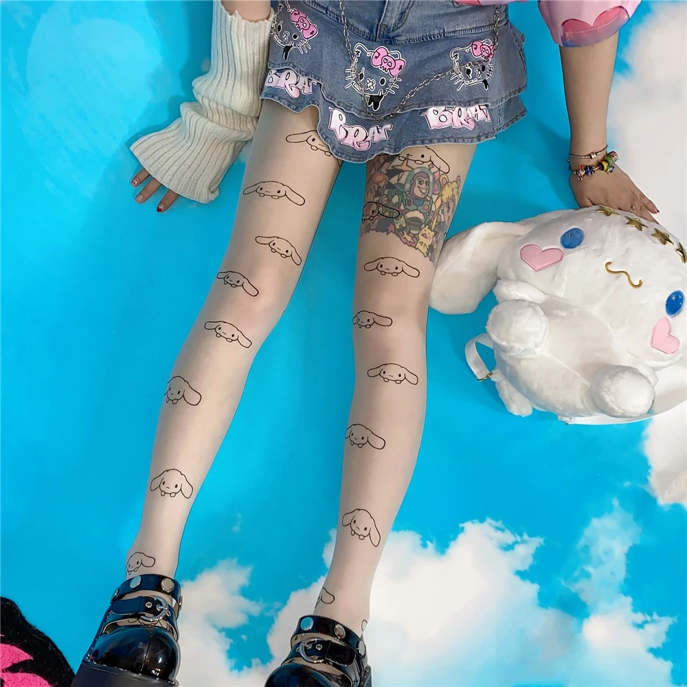 Кавайные чулки в сеточку с мультяшным рисунком, носки с котом куром...