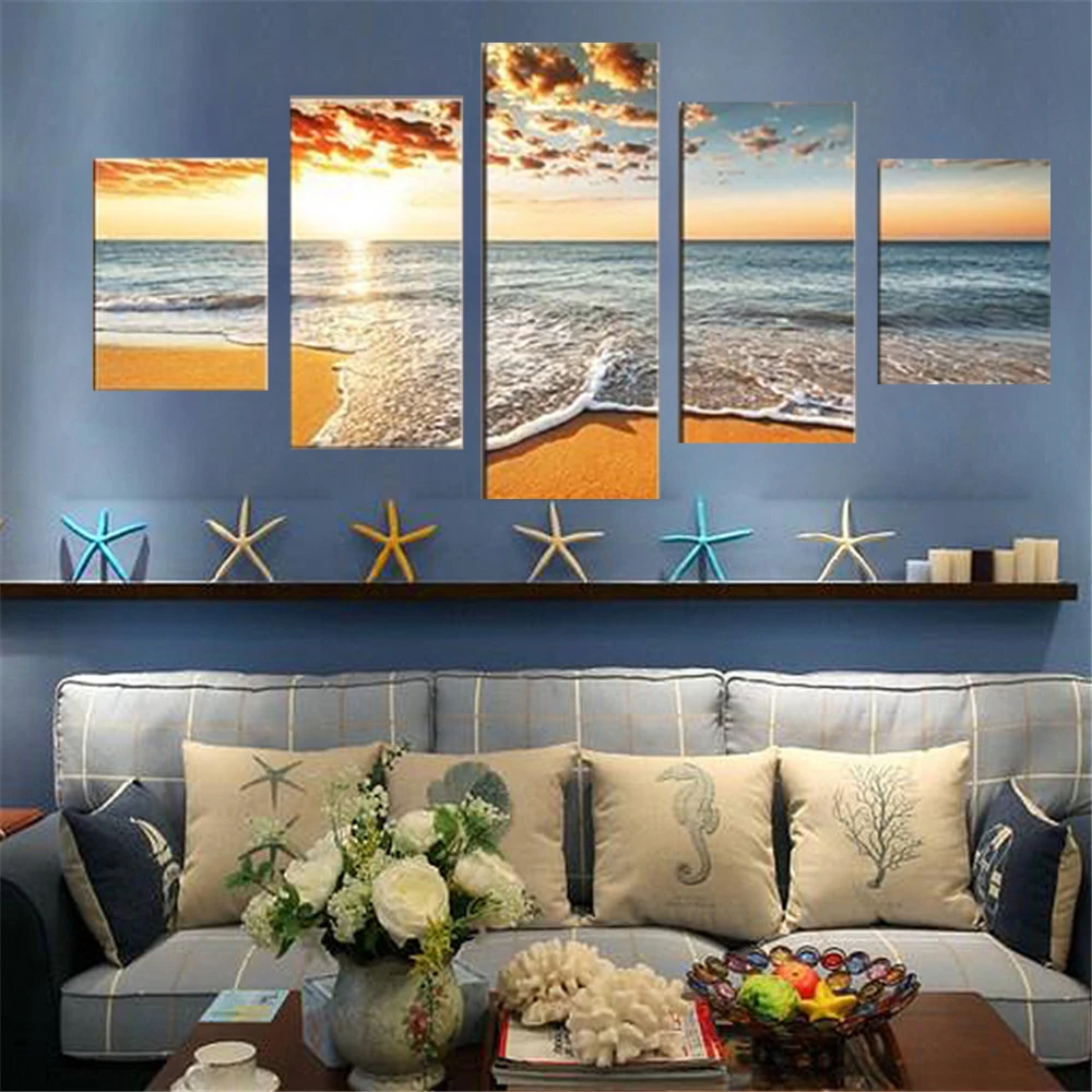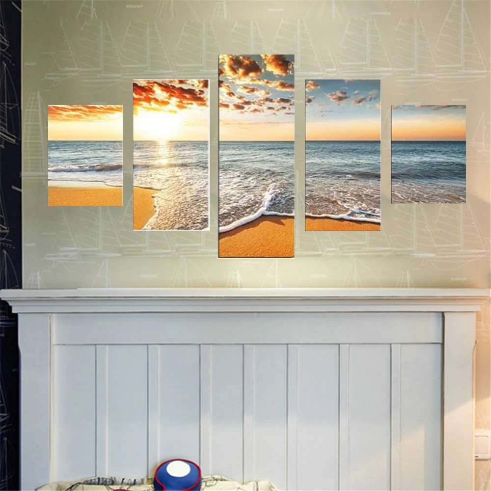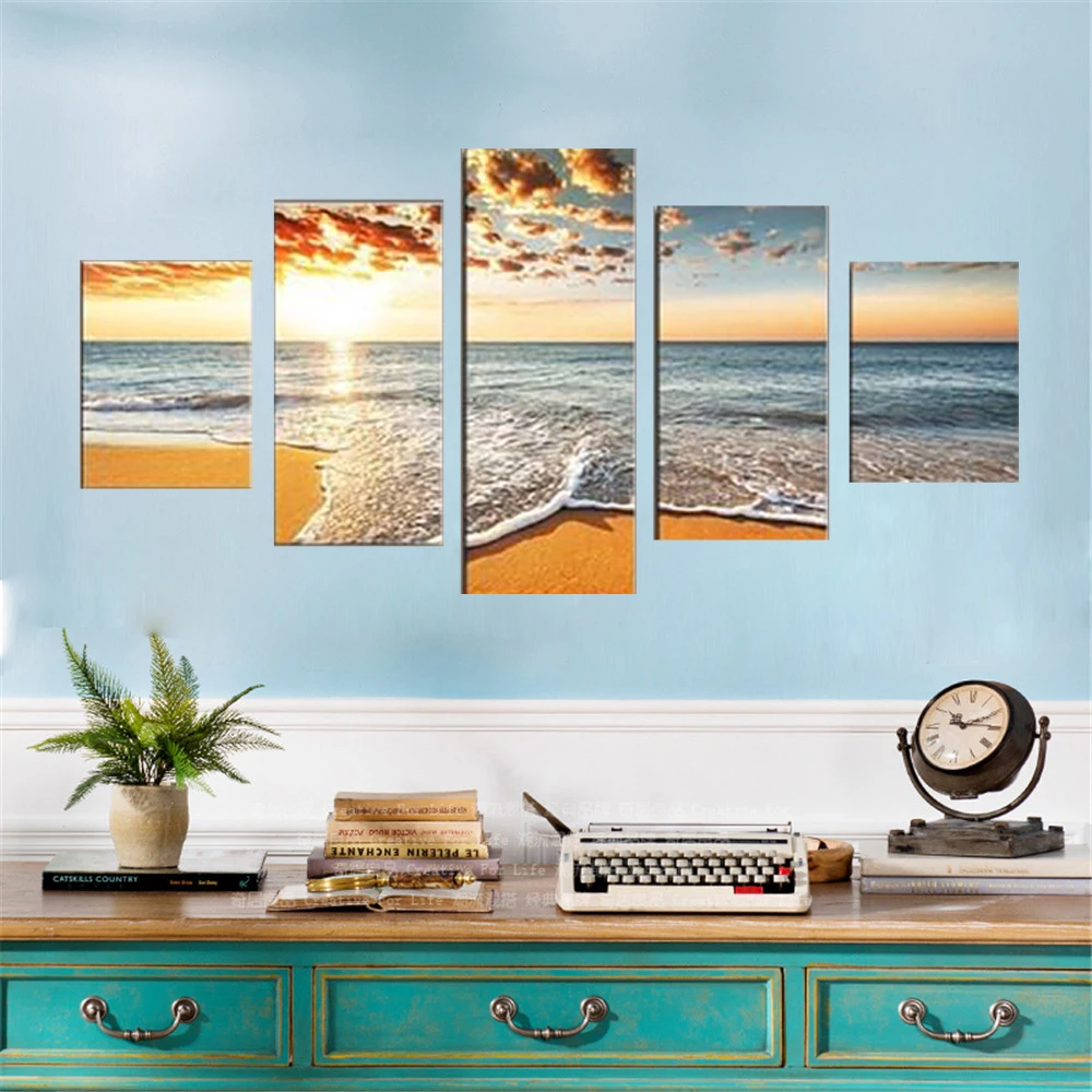 5 шт., настенная живопись, морской пейзаж, закат, светящийся закат,...