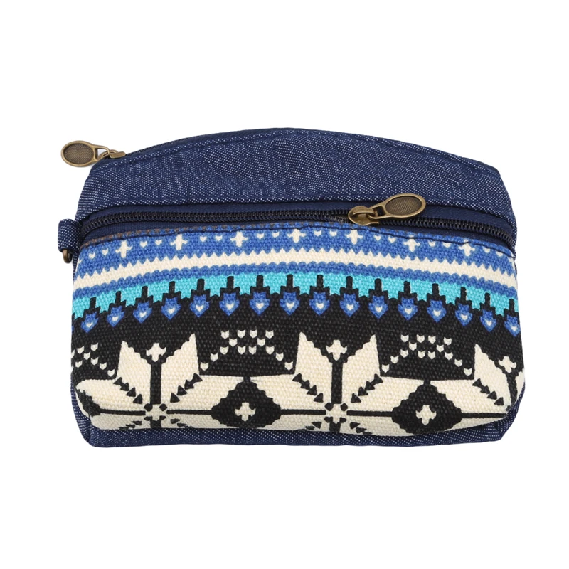 Этнический холщовый мини-кошелек, женские кошельки с двойной молнией, Детский кошелек для монет для девочек, кошельки для ключей