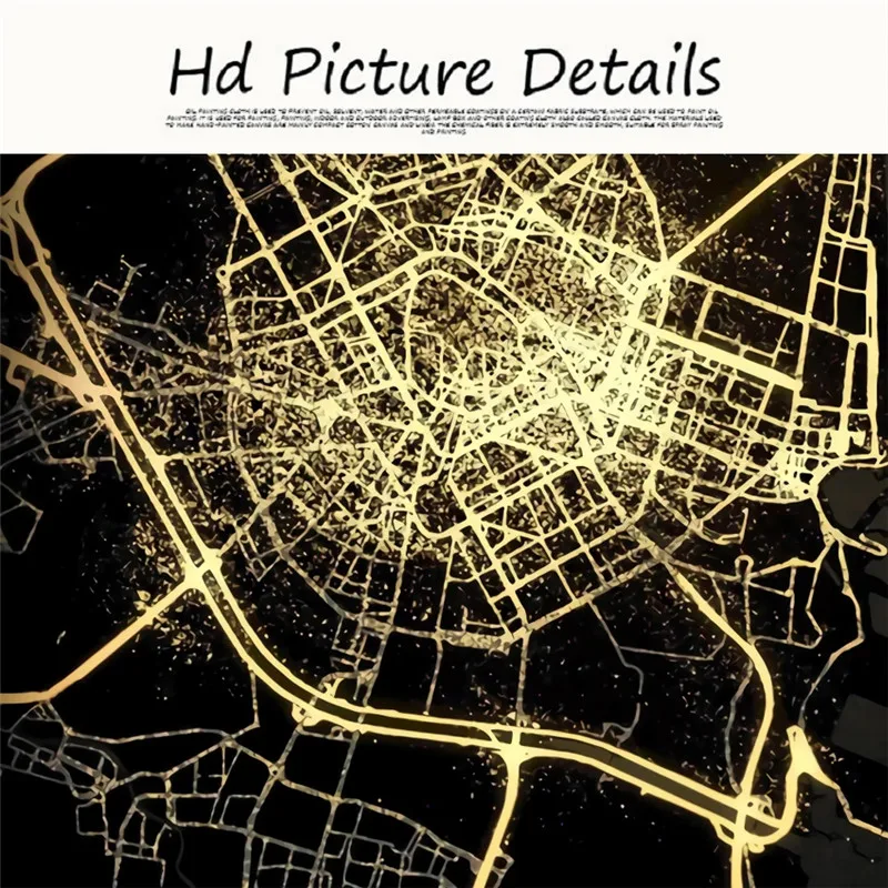 Картина на холсте с изображением знаменитого города огни и жары черного и золотого цвета для украшения интерьера