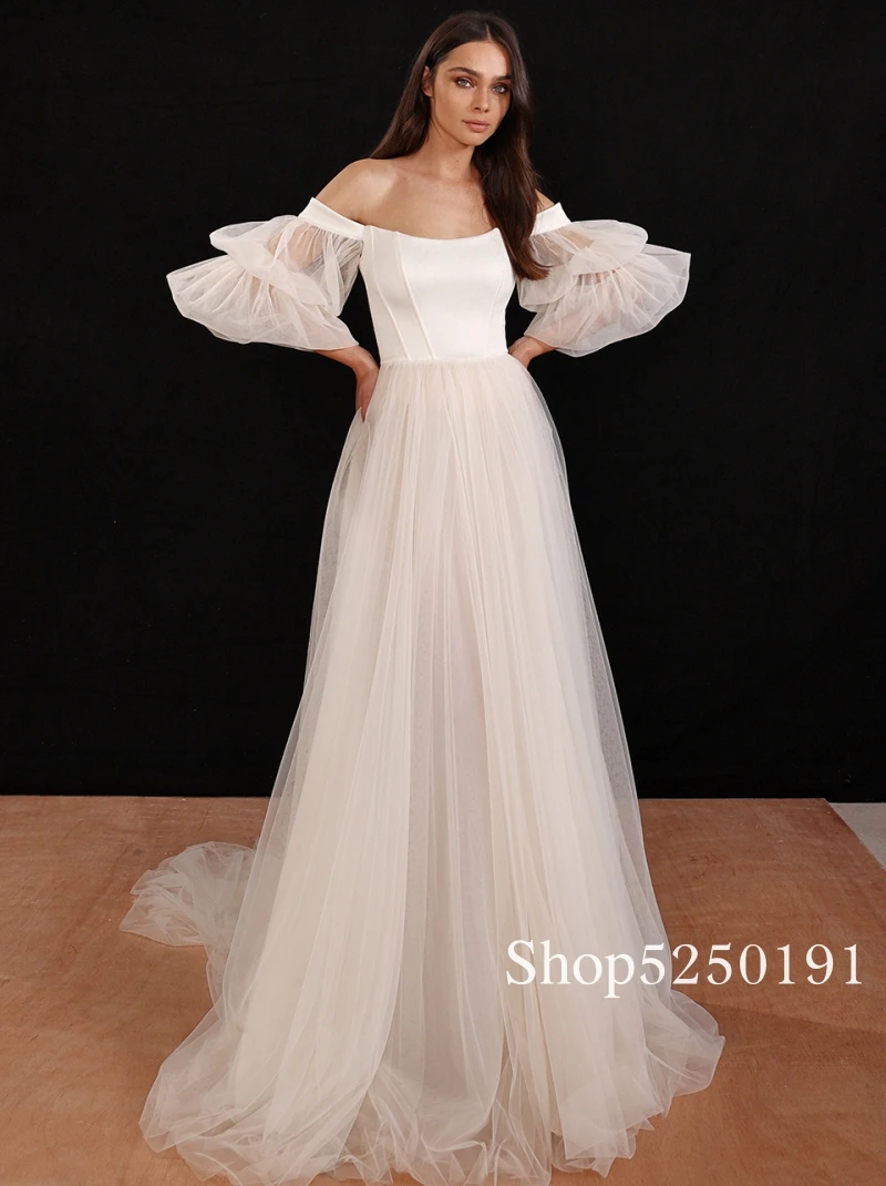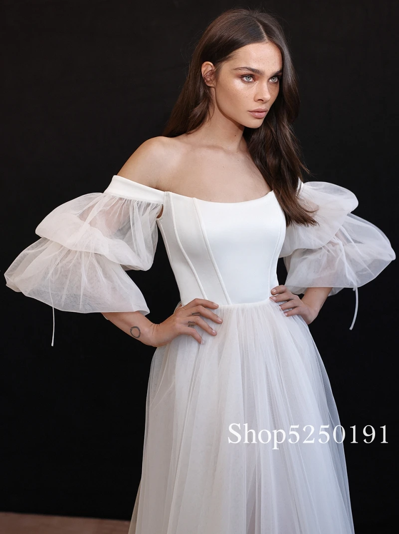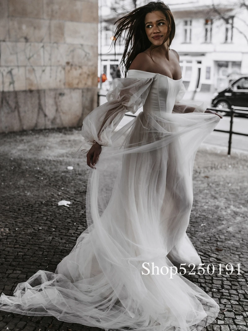 Свадебные платья в стиле бохо, сексуальные платья с открытыми плечами и пышными рукавами, пляжные тюлевые свадебные платья принцессы, искусственное платье 2021