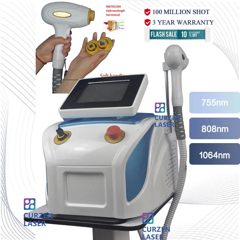 Лидер продаж, диодный лазер для удаления волос, александритовый лазер для удаления волос, 755 нм, 808 нм, 1064 нм