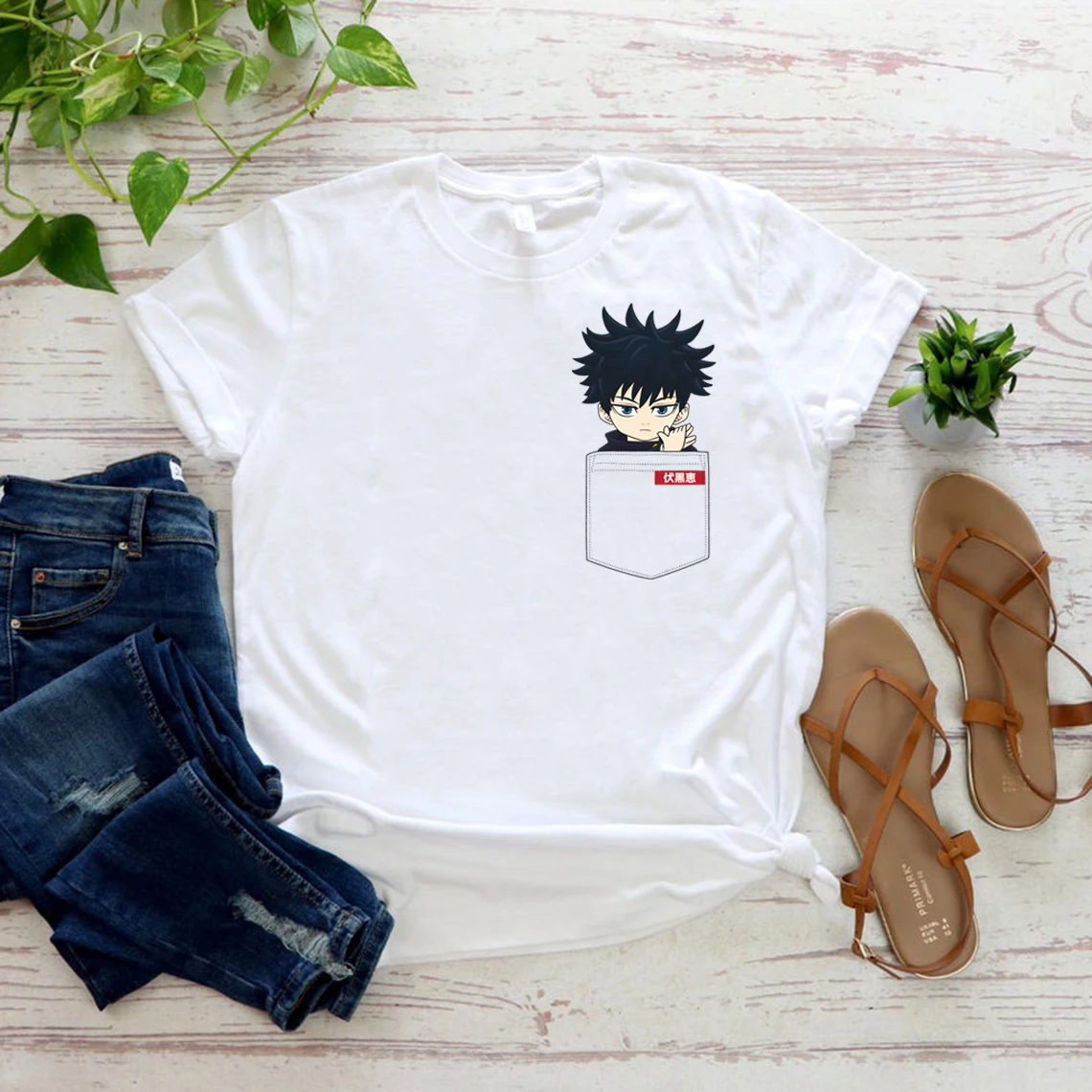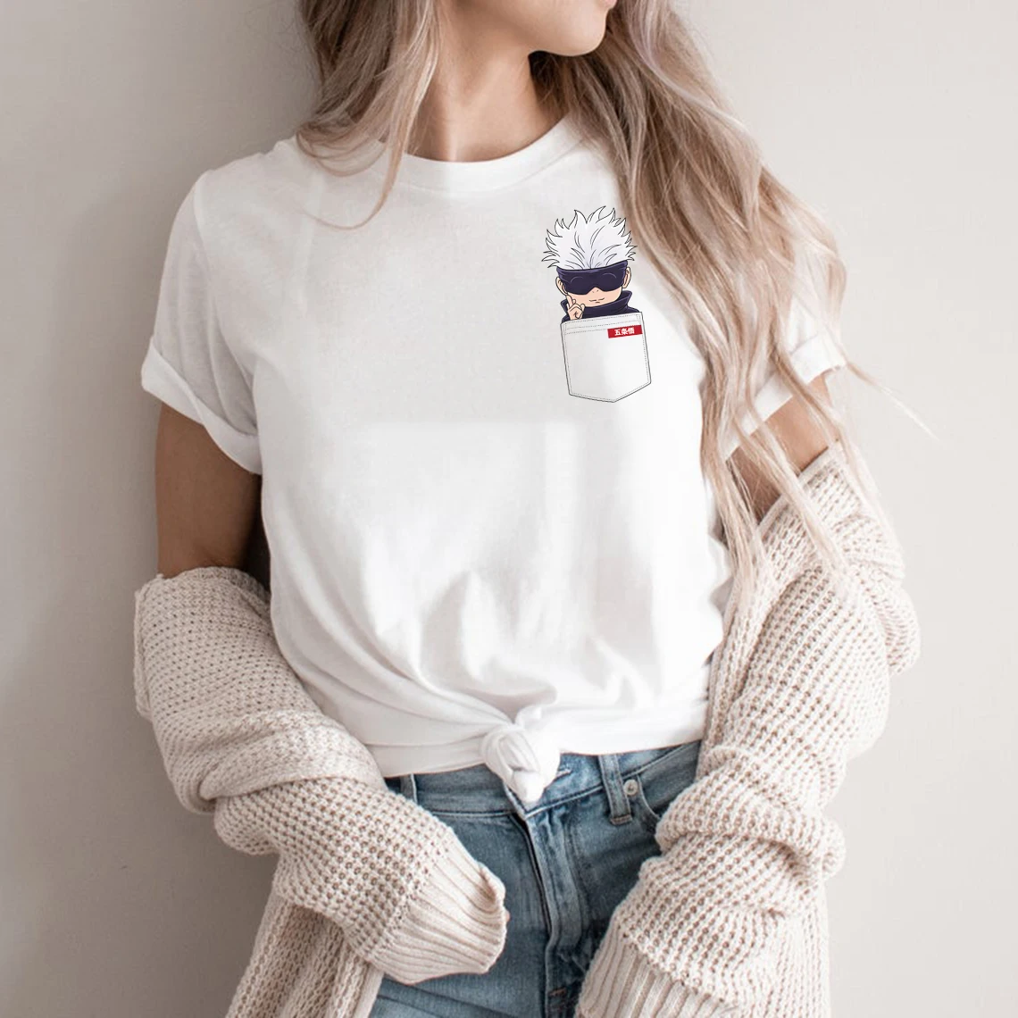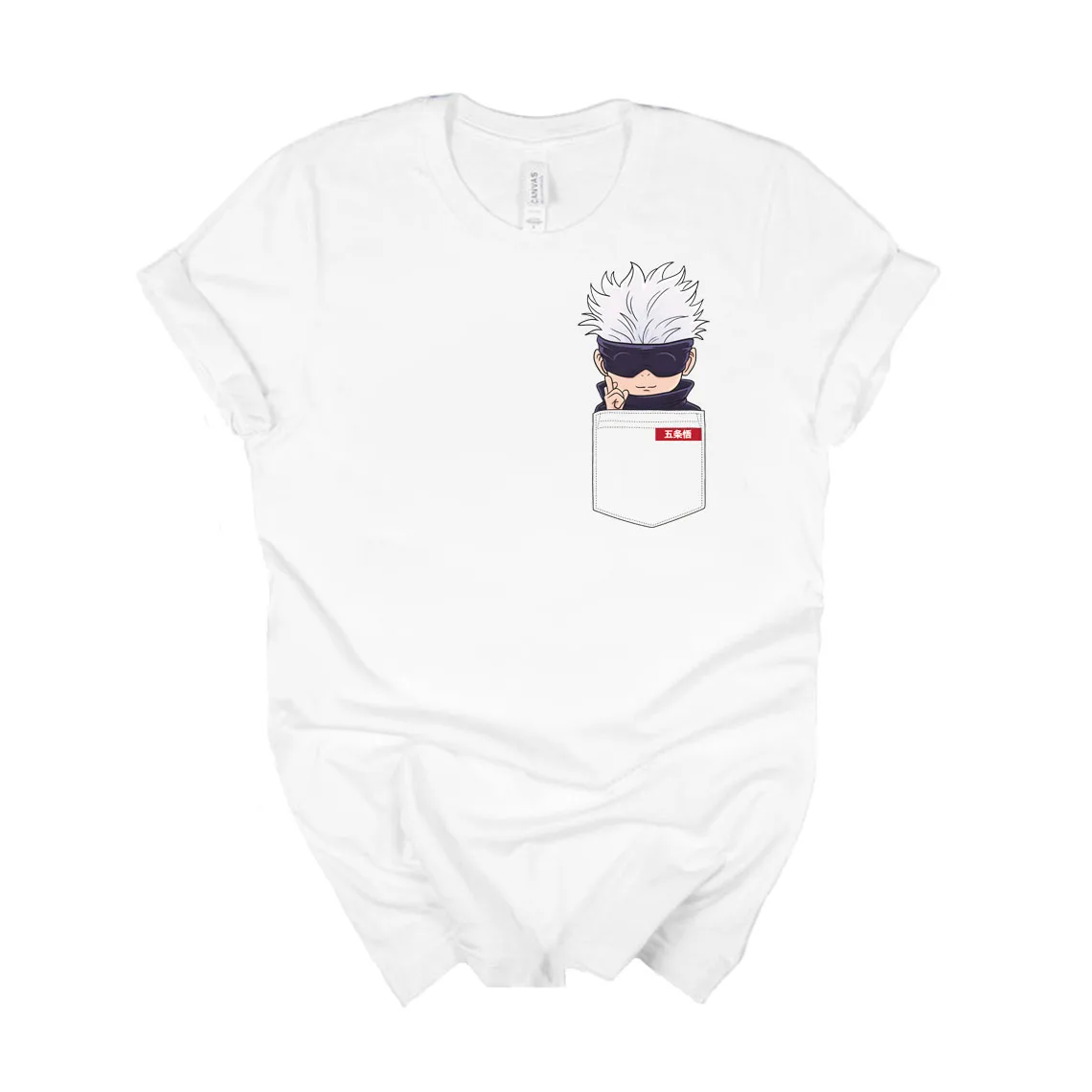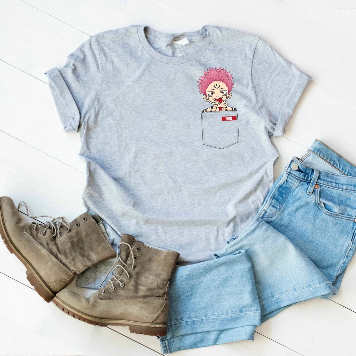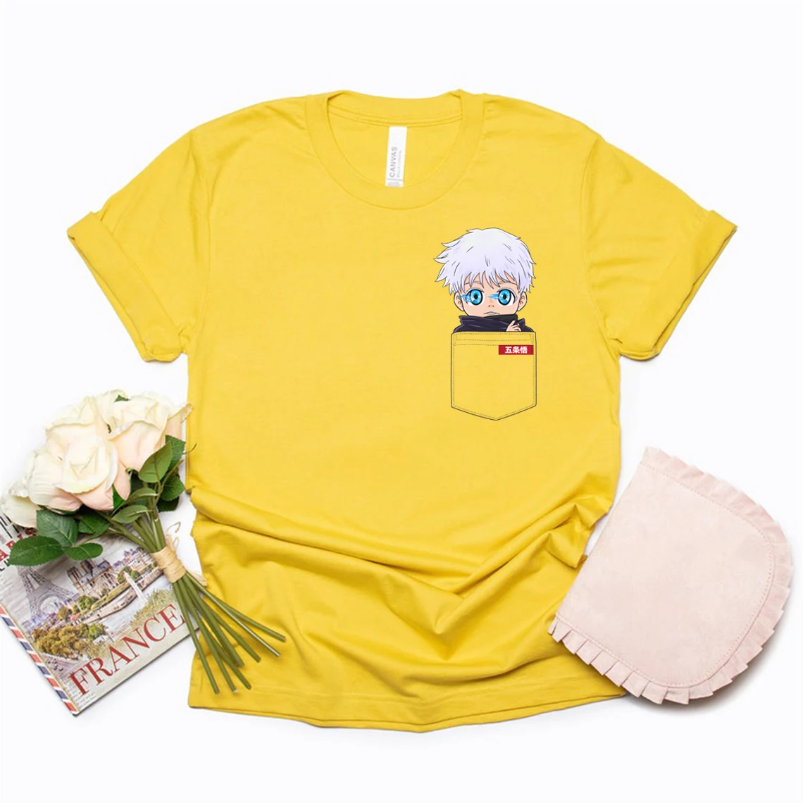 Футболка унисекс с рисунком, мультяшный принт в стиле Харадзюку, с карманом ююютсу, зайсу, Сатору, годжо, итадору