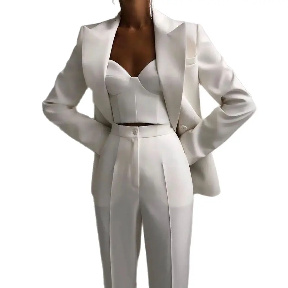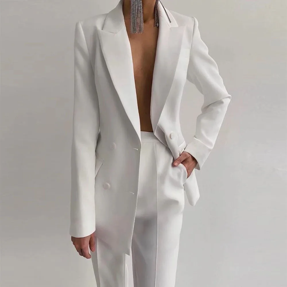 Женский костюм из пиджака и брюк, белый облегающий двубортный пиджак невесты и матери на заказ