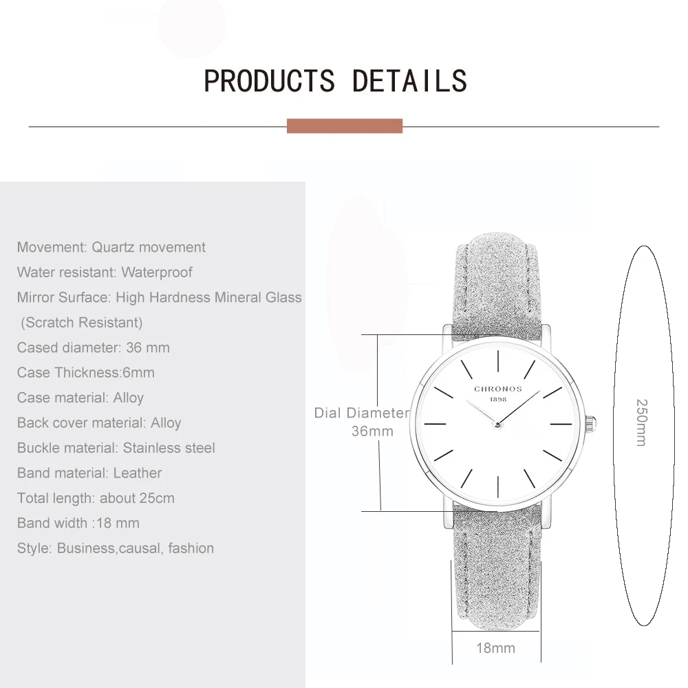 Часы наручные CHRONOS CH26 женские с кожаным ремешком, замшевой пряжкой и ремешком