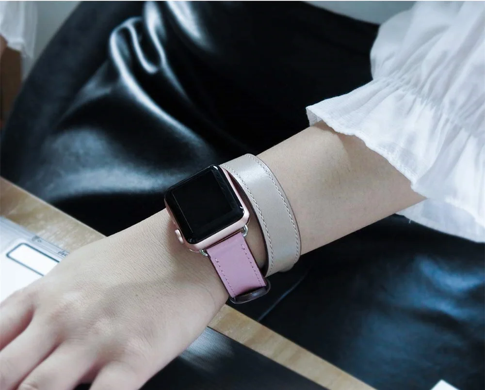 Двойная кожаная Петля для Apple Watch Band, сверхдлинный ремешок 45...