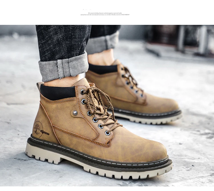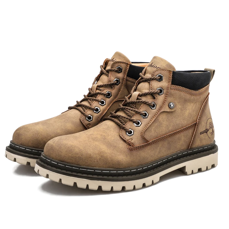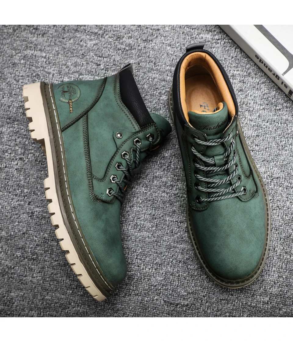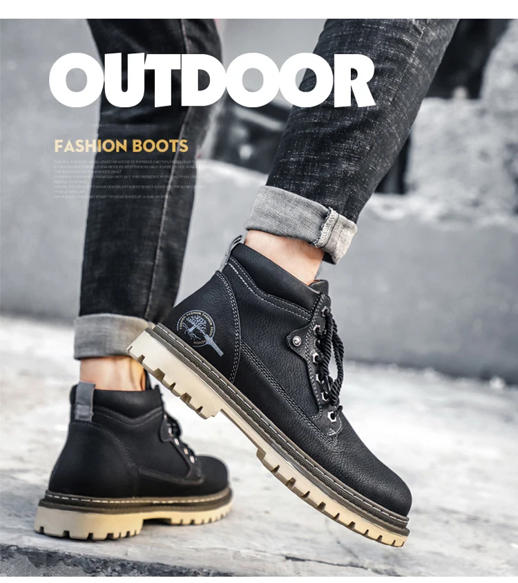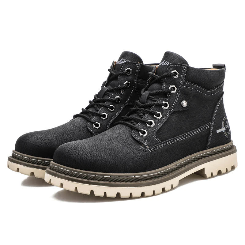 Мужские кожаные ботинки на шнуровке, мотоциклетные ботинки с плюшевой подкладкой, теплые ботинки для снега, VESONAL, 2021