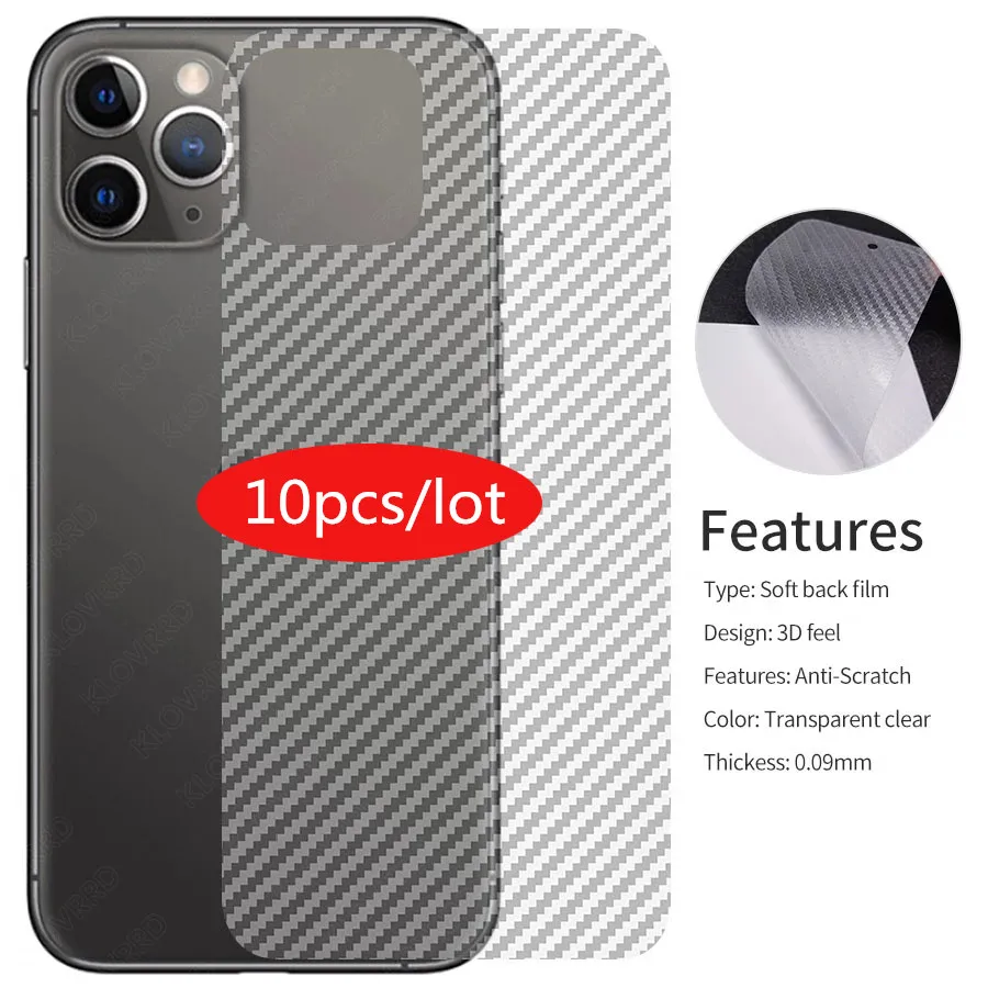 10 шт. задняя пленка из углеродного волокна для IPhone 12 11 Pro Max 6 6s 7 8 Plus прозрачная защитная пленка для iphone 12 Mini SE2020 XS MAX