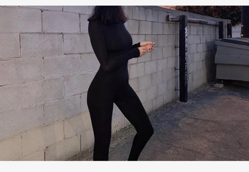 Демисезонный женский комбинезон с длинным рукавом, облегающее боди, спортивная верхняя одежда с высокой талией, уличная одежда, слитный сексуальный женский комбинезон