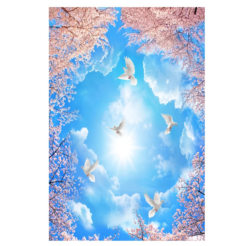 3D-обои с голубым небом и белыми облаками, вишневый голубь, фотообои с декоративными фресками, водонепроницаемые обои
