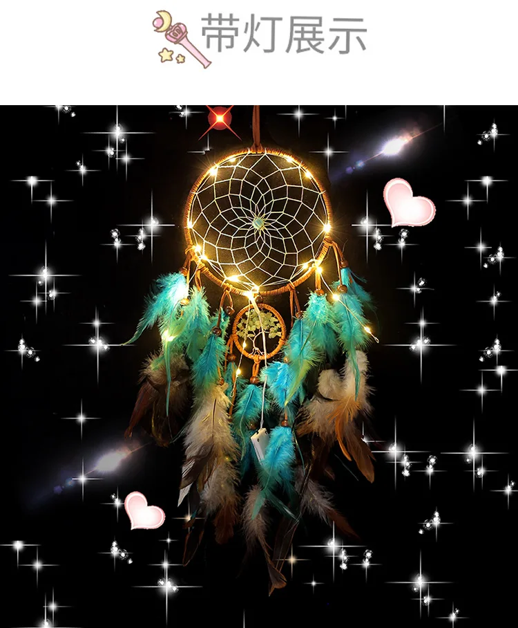 Об этом товаре【Материал 】 металлический круг, синий кварц, высокое качество натурального пера, светодиодные фонари.