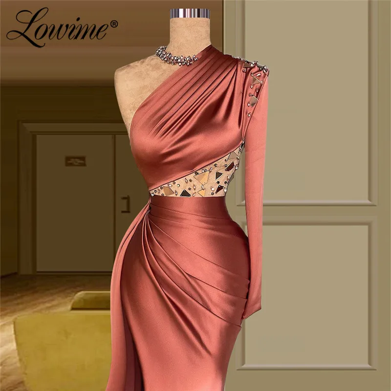 Женское вечернее платье-Русалка Lowime, Элегантное Длинное платье на одно плечо, украшенное кристаллами, для выпускного вечера, в арабском стиле, 2021