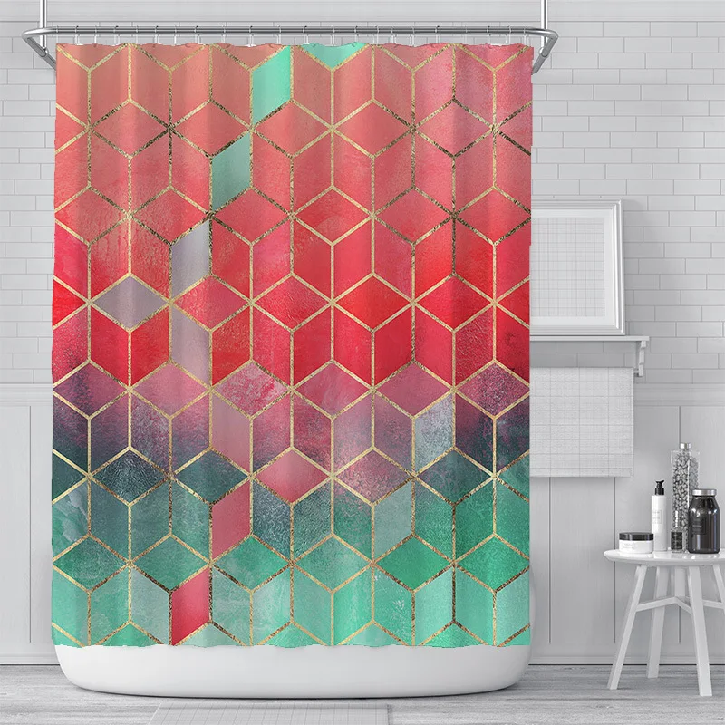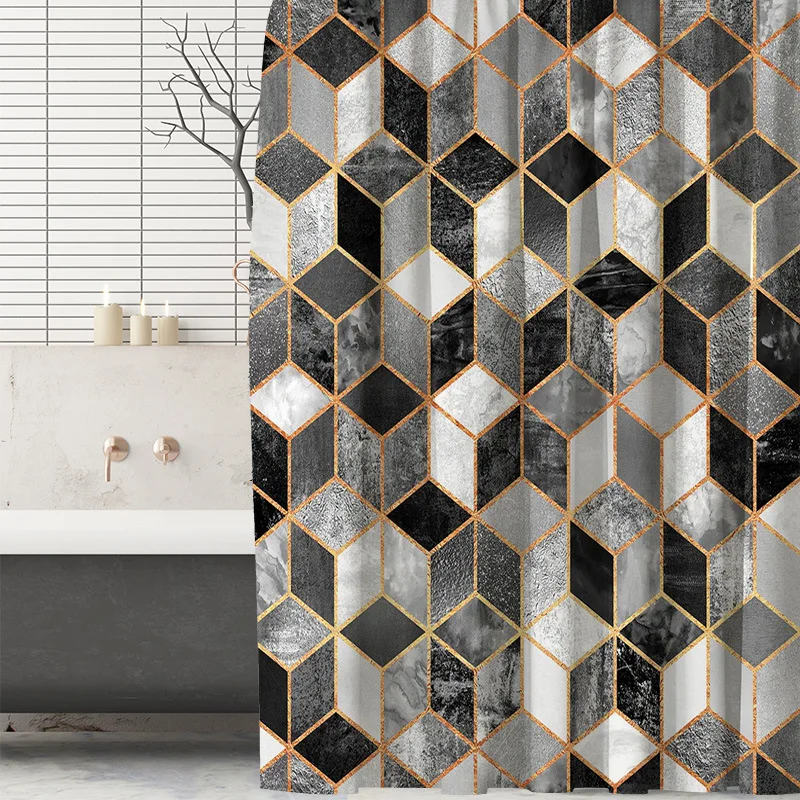 Водонепроницаемая тканевая занавеска для душа в ванную комнату с геометрическим цифровым принтом, современный аксессуар для ванной комнаты