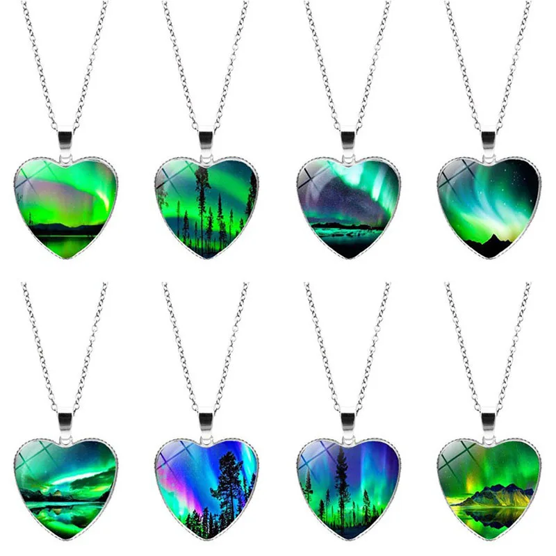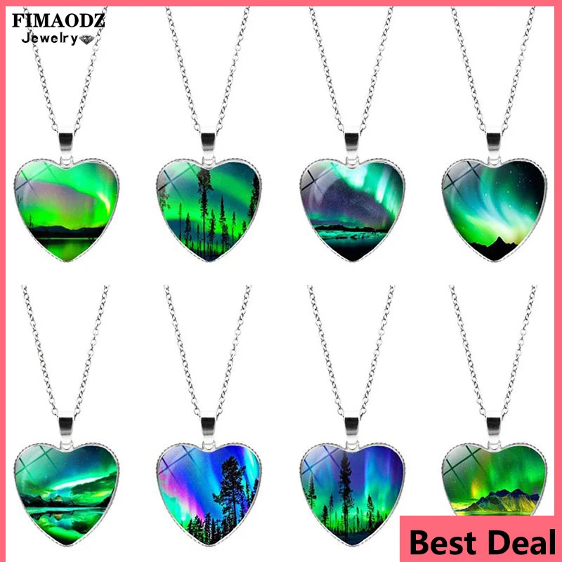 Ожерелье FIMAODZ с зеленым северным освещением, подвеска из стекла с рисунком северного сияния, ручная работа, ювелирные сувениры