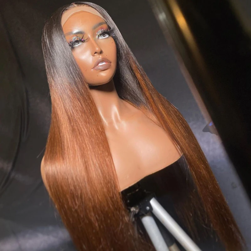 Парик Омбре из коричневых человеческих волос на шнуровке спереди, прямые бразильские парики T1B30 с T-образной кутикулой, парик на шнуровке 4x4, 180% предварительно выщипанный