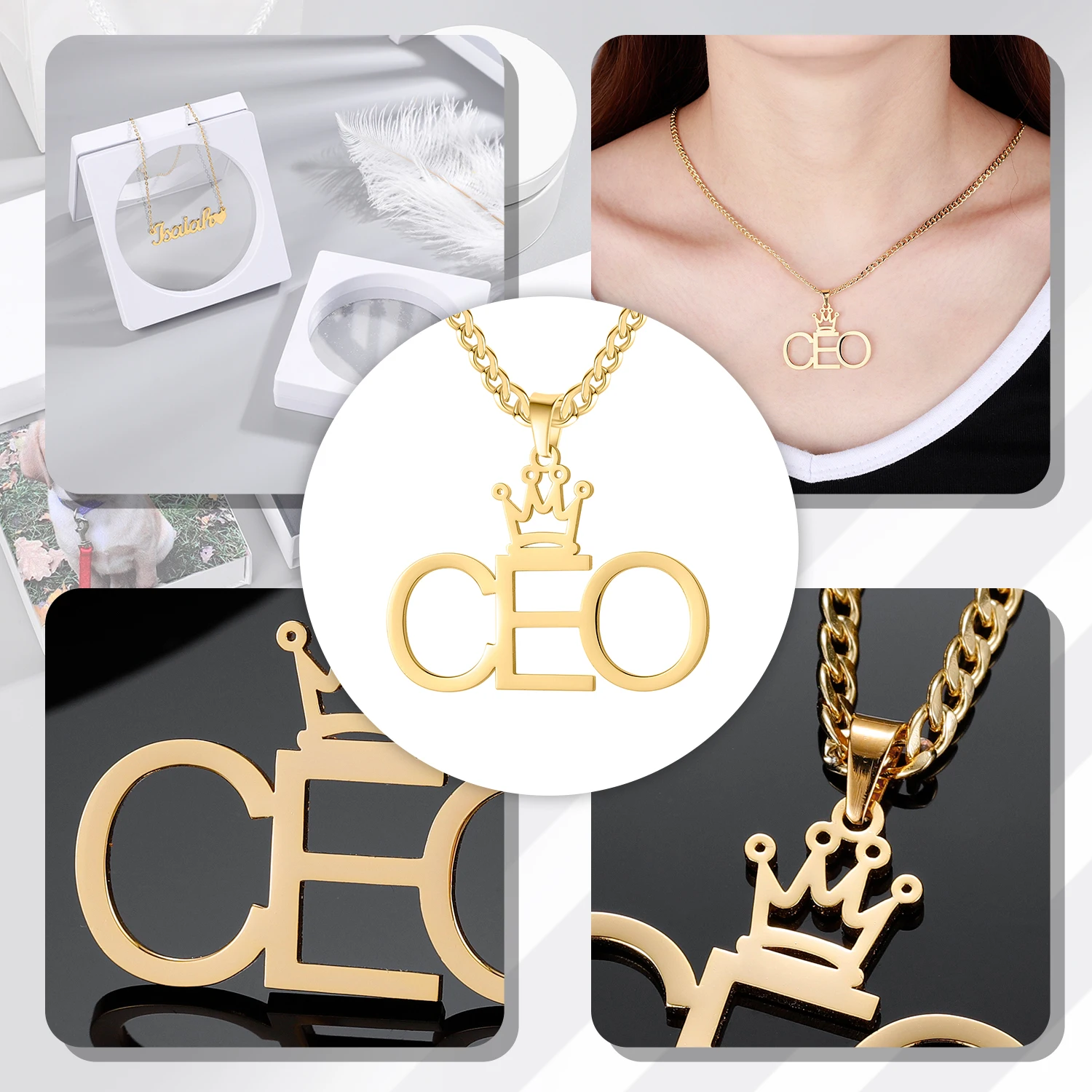 Ожерелье с именем хрусталя для женщин, ювелирные изделия из нержаве...