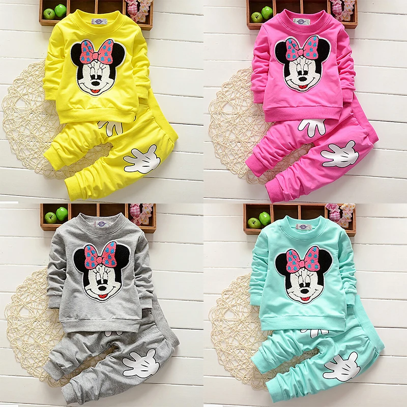 Милый наряд с Микки Минни комплект одежды для маленьких мальчиков и девочек, хлопковый топ + штаны комплект из 2 предметов детские спортивные костюмы на весну и осень