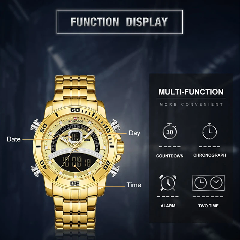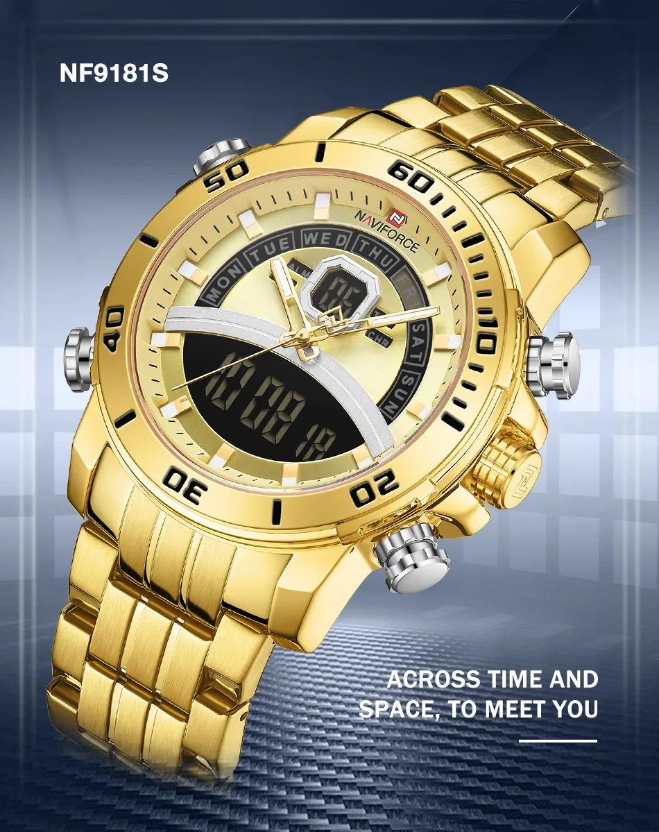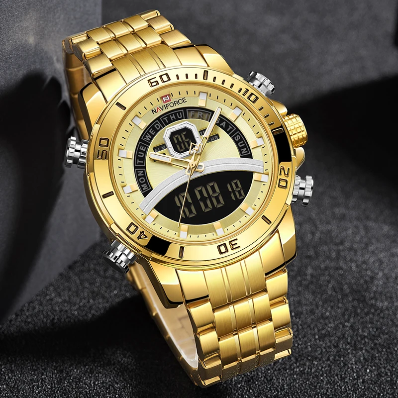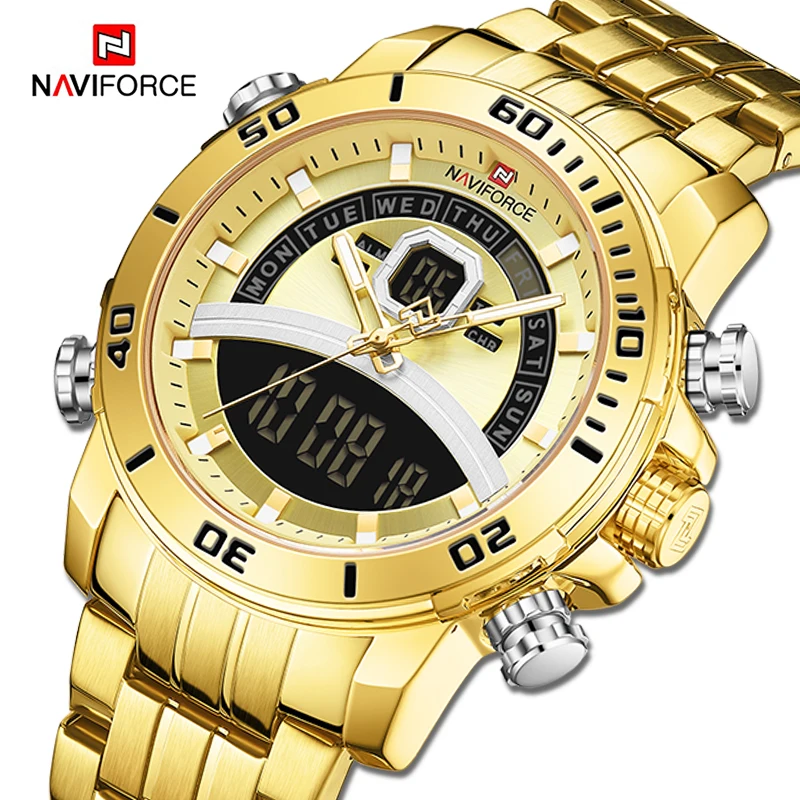 NAVIFORCE часы для мужчин роскошные золотые бизнес цифровые наручны...