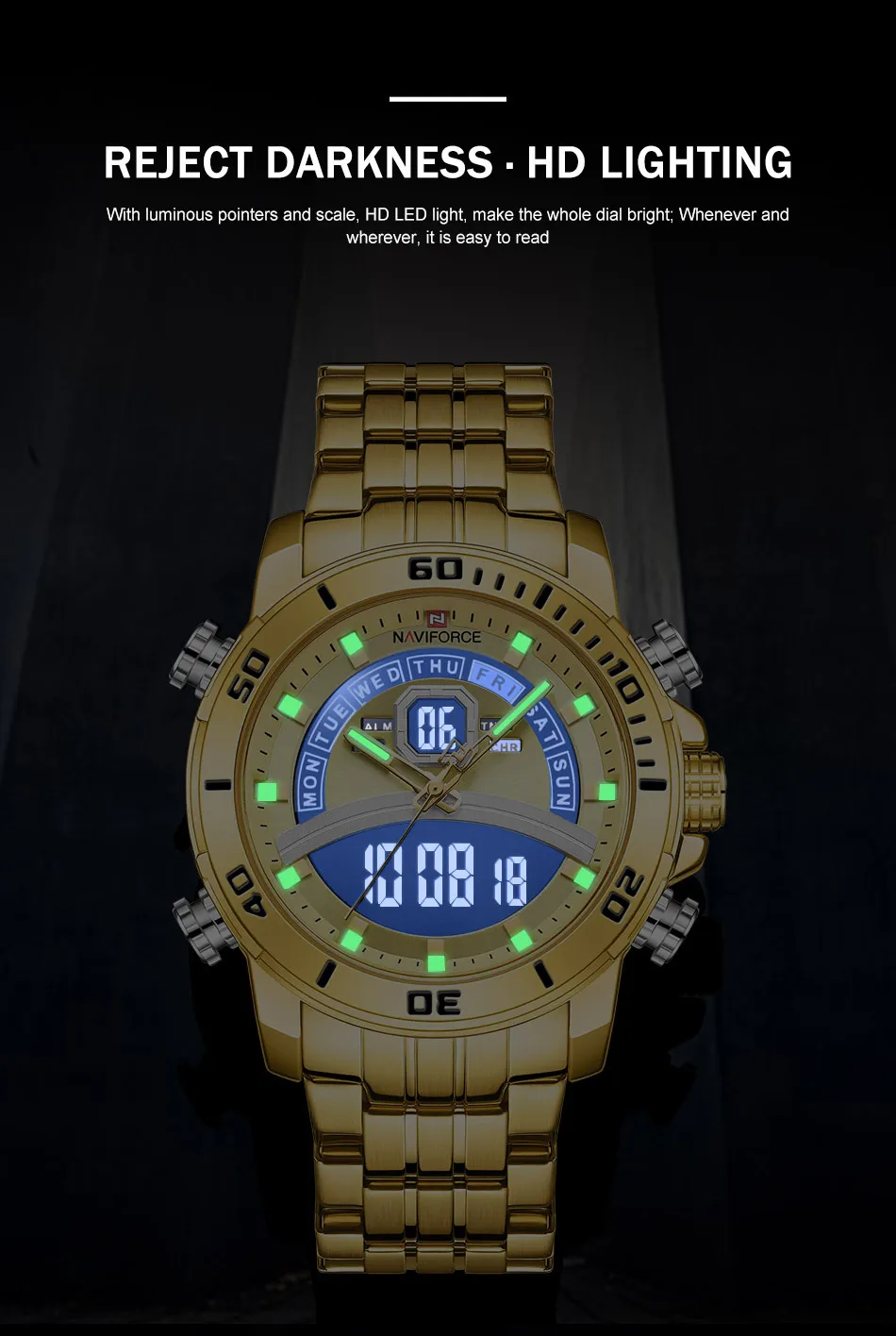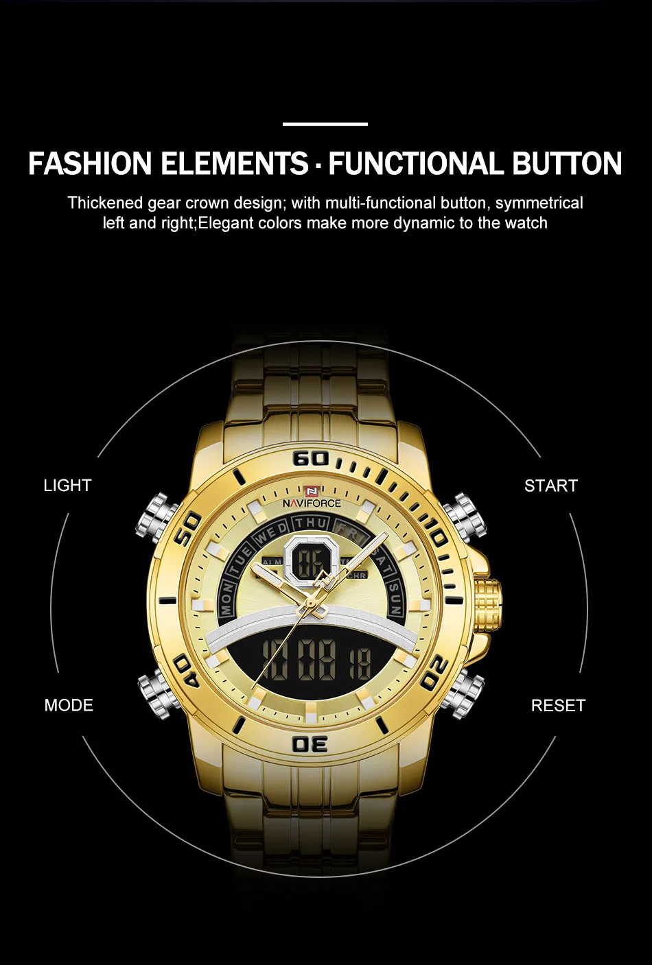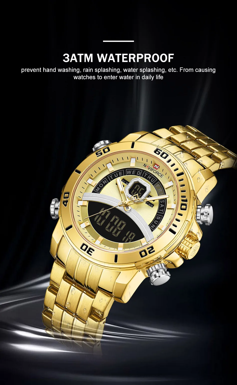NAVIFORCE часы для мужчин роскошные золотые бизнес цифровые наручны...