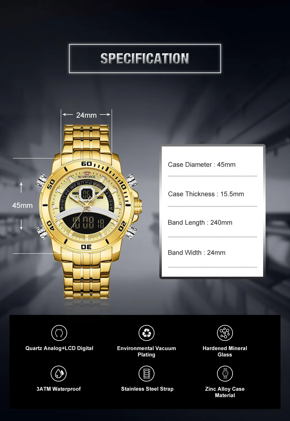 Часы NAVIFORCE мужские, спортивные, водонепроницаемые, с двойным дисплеем