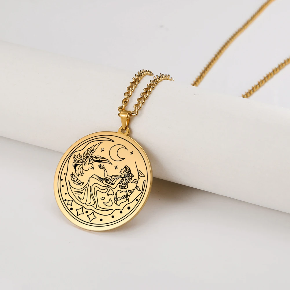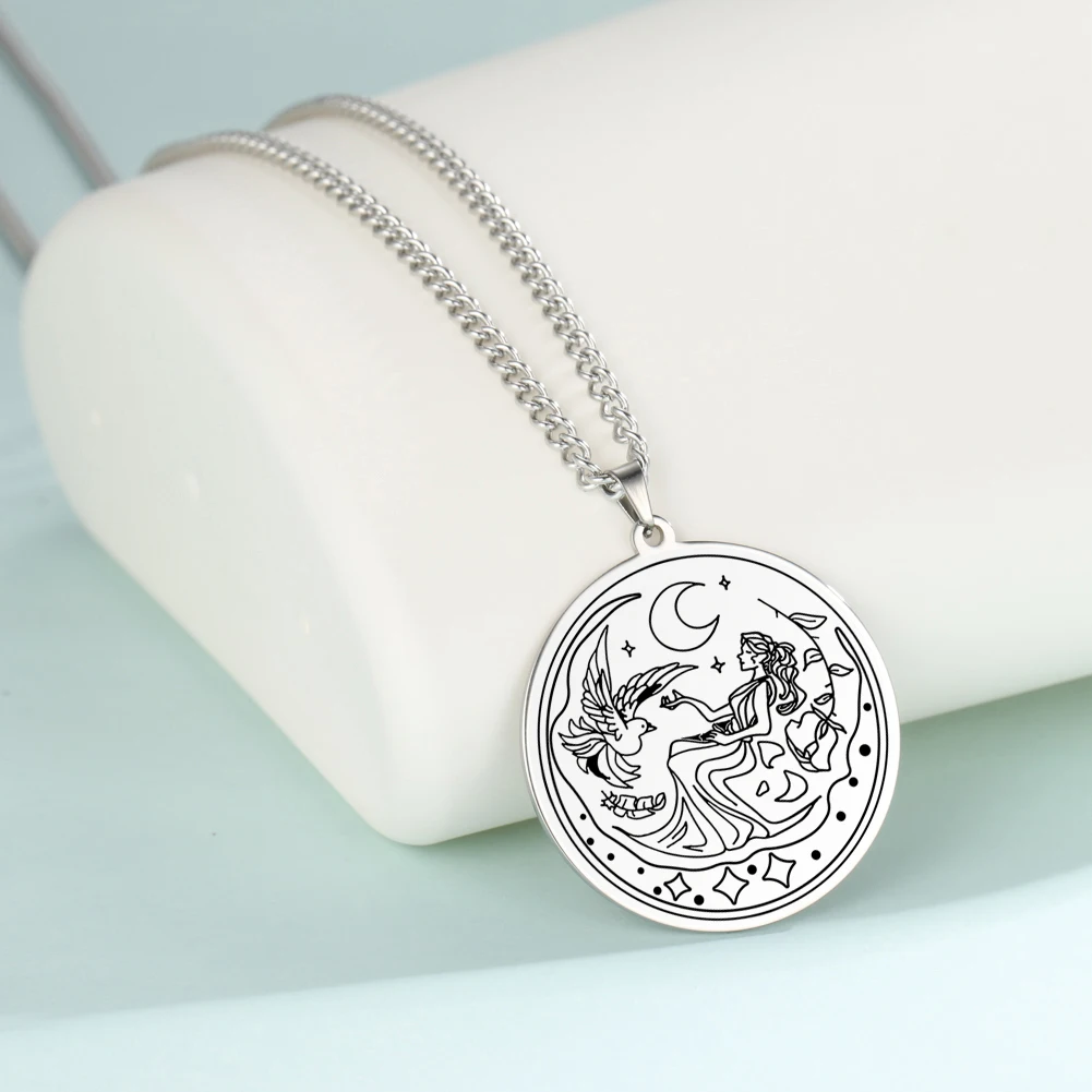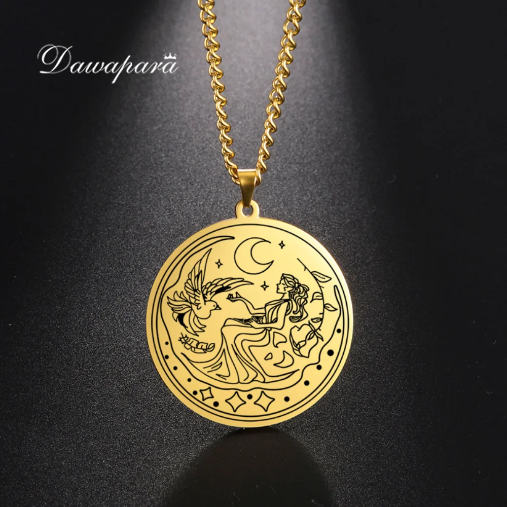 Dawapara, подвеска богини луны, талисман греческой мифологии, винтажное ожерелье, ювелирные изделия из нержавеющей стали