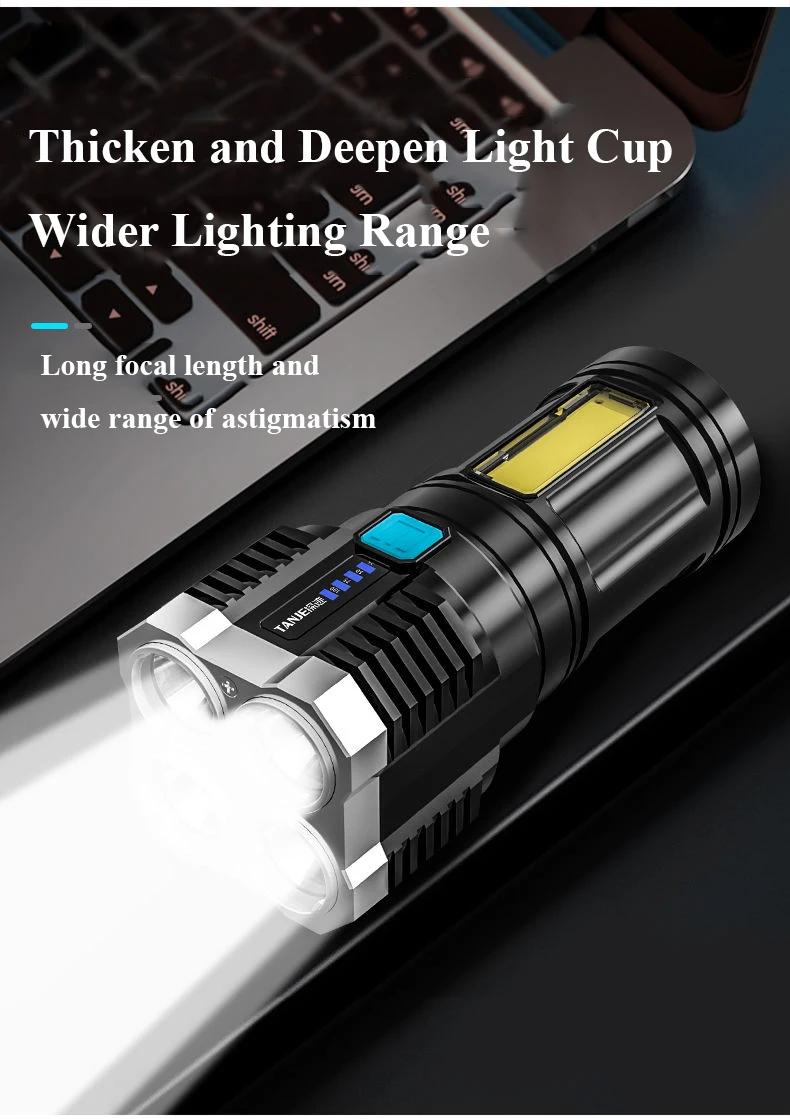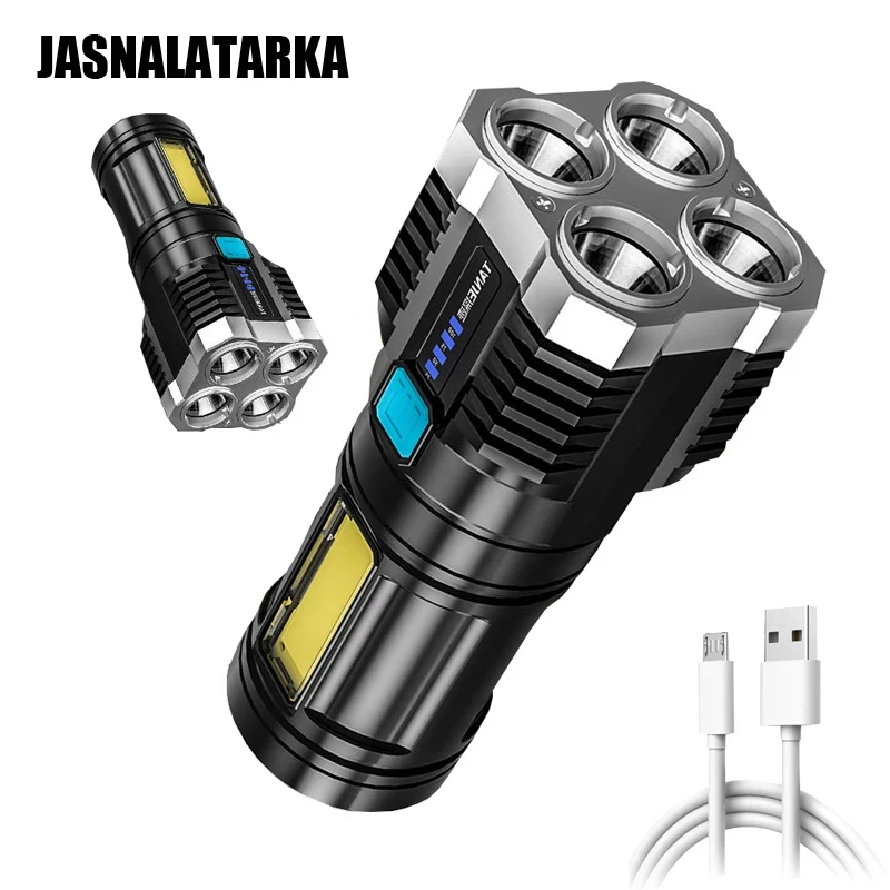 Светодиодные фонарики высокой мощности, Ультраяркий фонарик для кемпинга, фонарик с аккумулятором USB, яркий фонарик с 4 режимами переключения