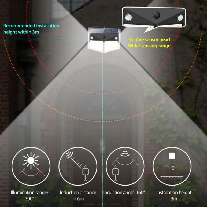 1,4-боковое освещение: 160 градусов двойных датчиков и 300 градусов освещения, обеспечивая супер яркое освещение для широкой области.