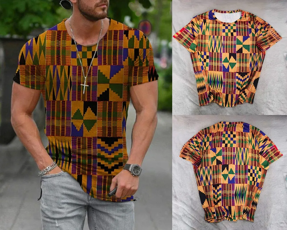 Мужская Ретро футболка с разрезом и 3D-принтом, футболка с круглым ...