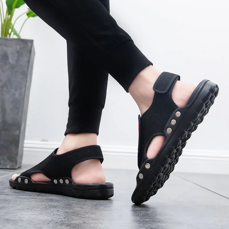 Мужские летние сандалии, черные дышащие Нескользящие износостойкие ...