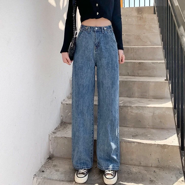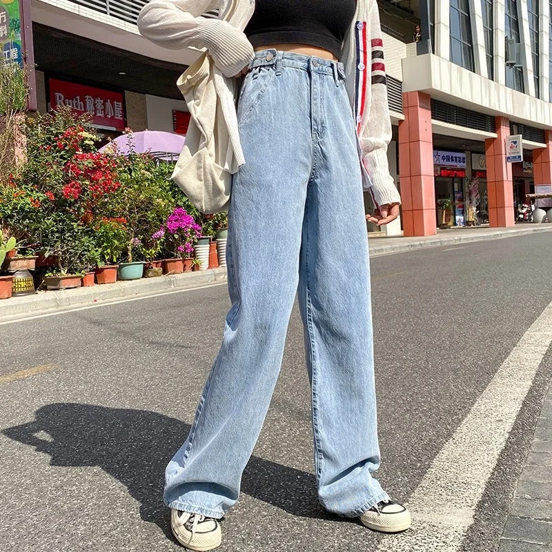 Джинсы женские прямые с высокой талией, широкие, свободные и тонкие