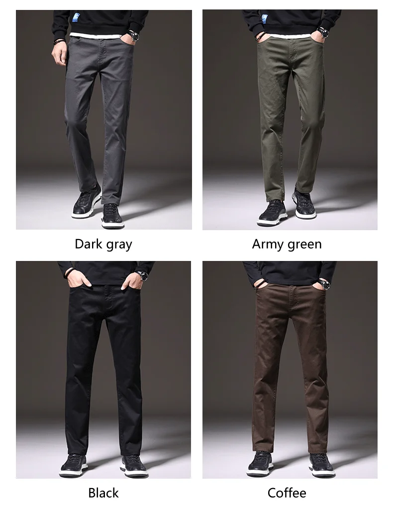 2021 Осенние новые мужские облегающие хлопковые повседневные эластичные брюки, деловые модные высококачественные брюки, мужские брендовые цвета хаки, зеленый, серый