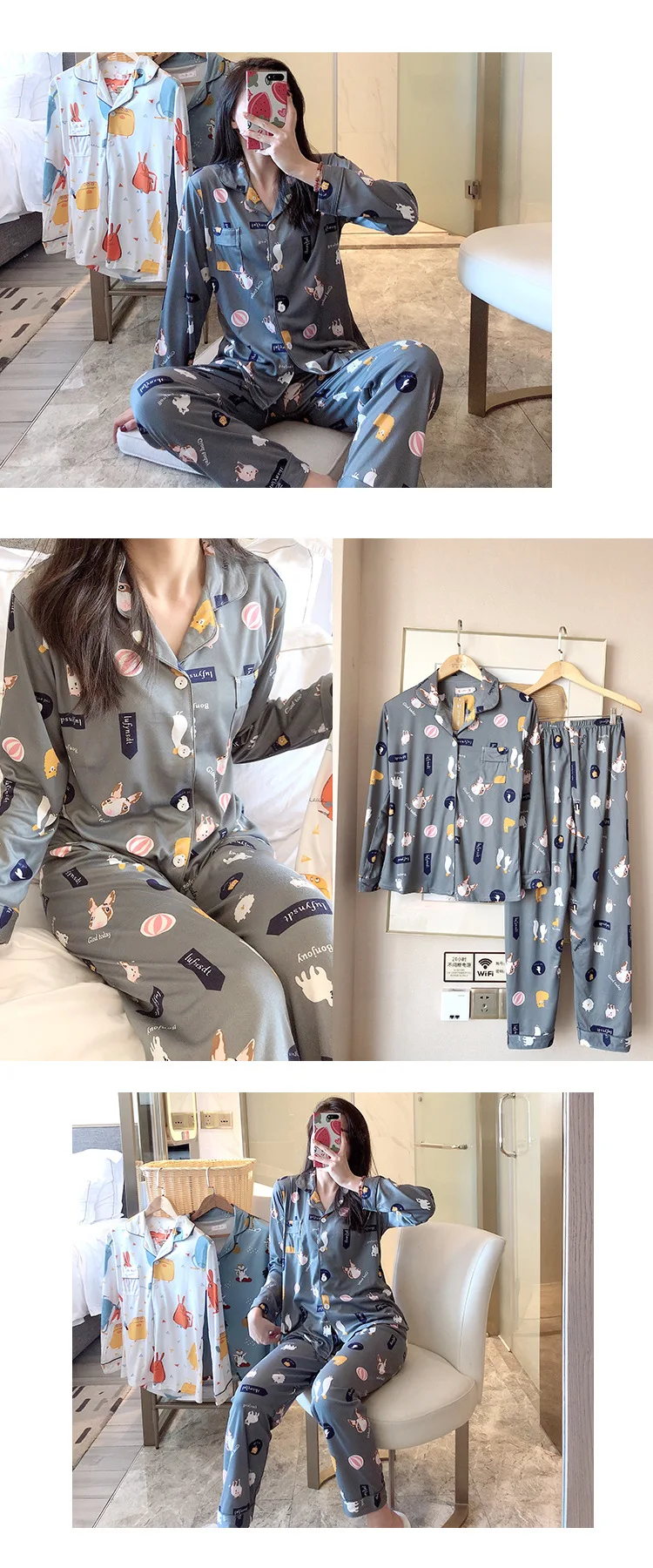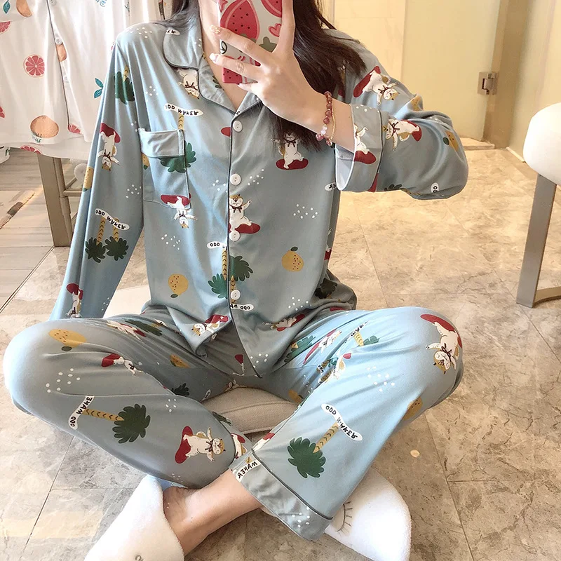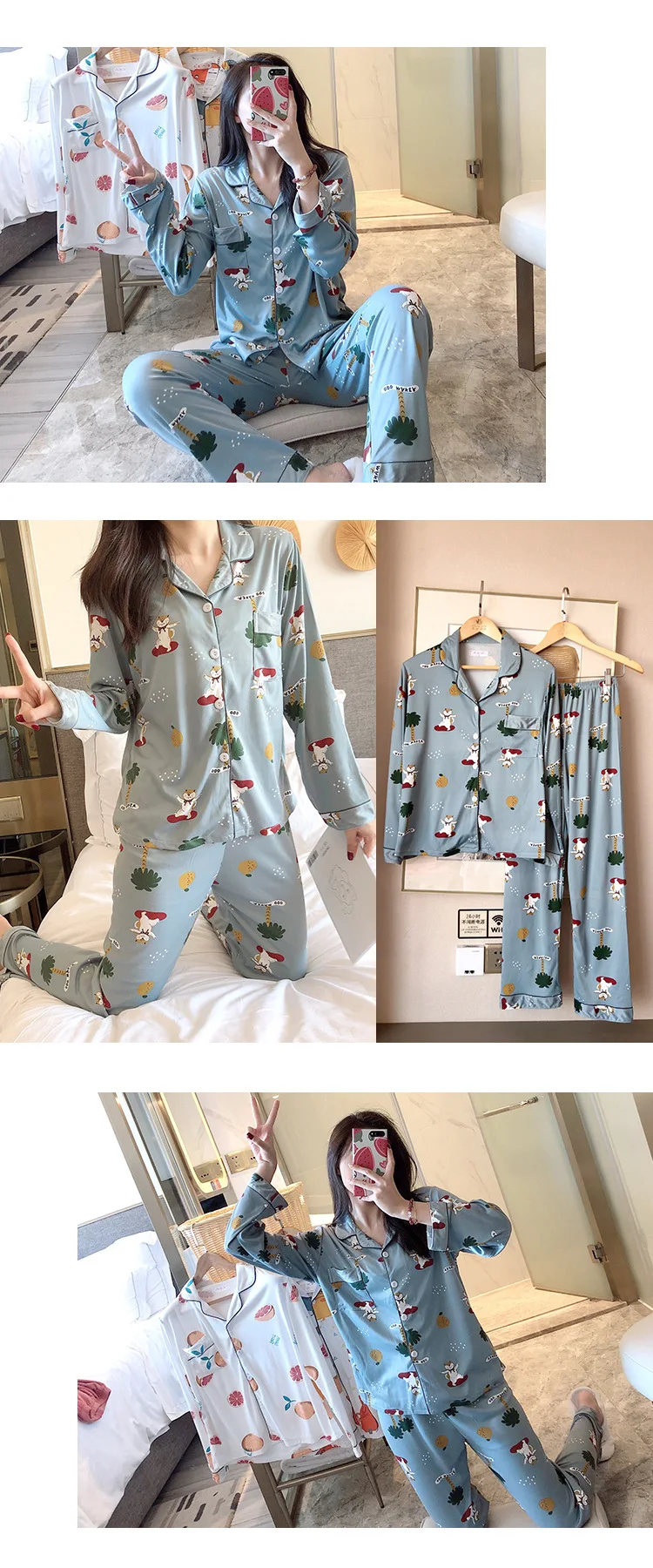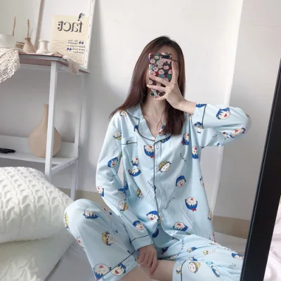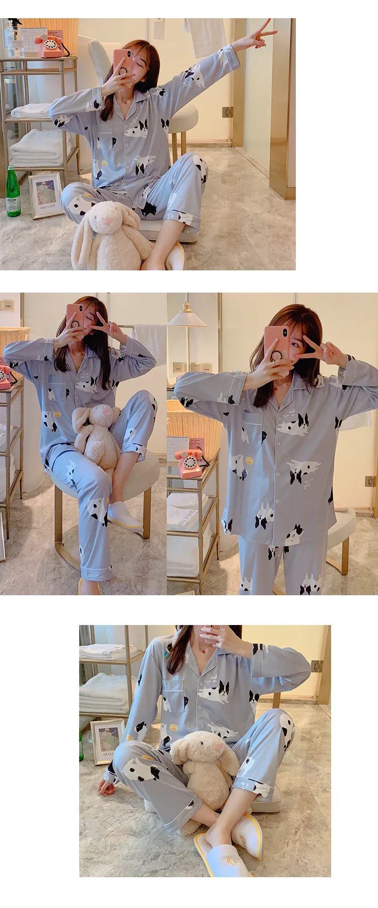 Зимняя Пижама с забавным рисунком французской собаки, комплект с длинным рукавом, новинка, женский кардиган с мультяшным принтом, домашняя одежда, синяя комфортная свободная Пижама