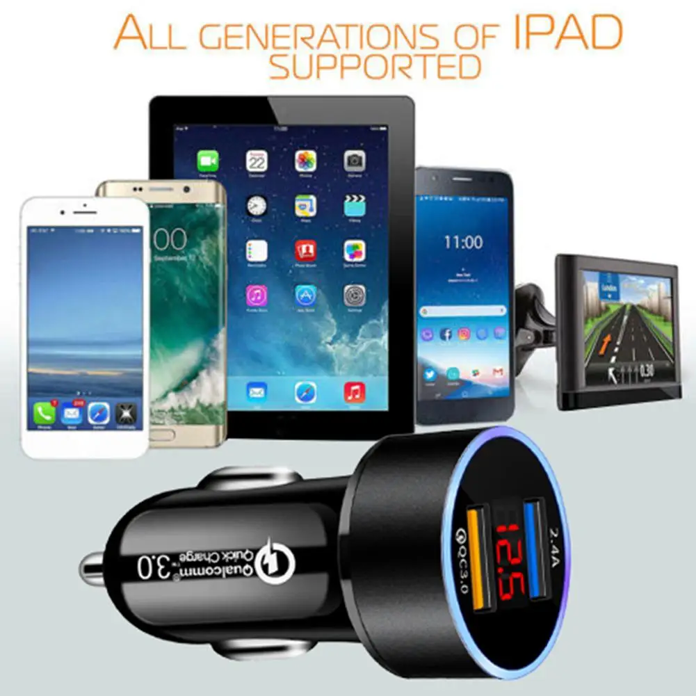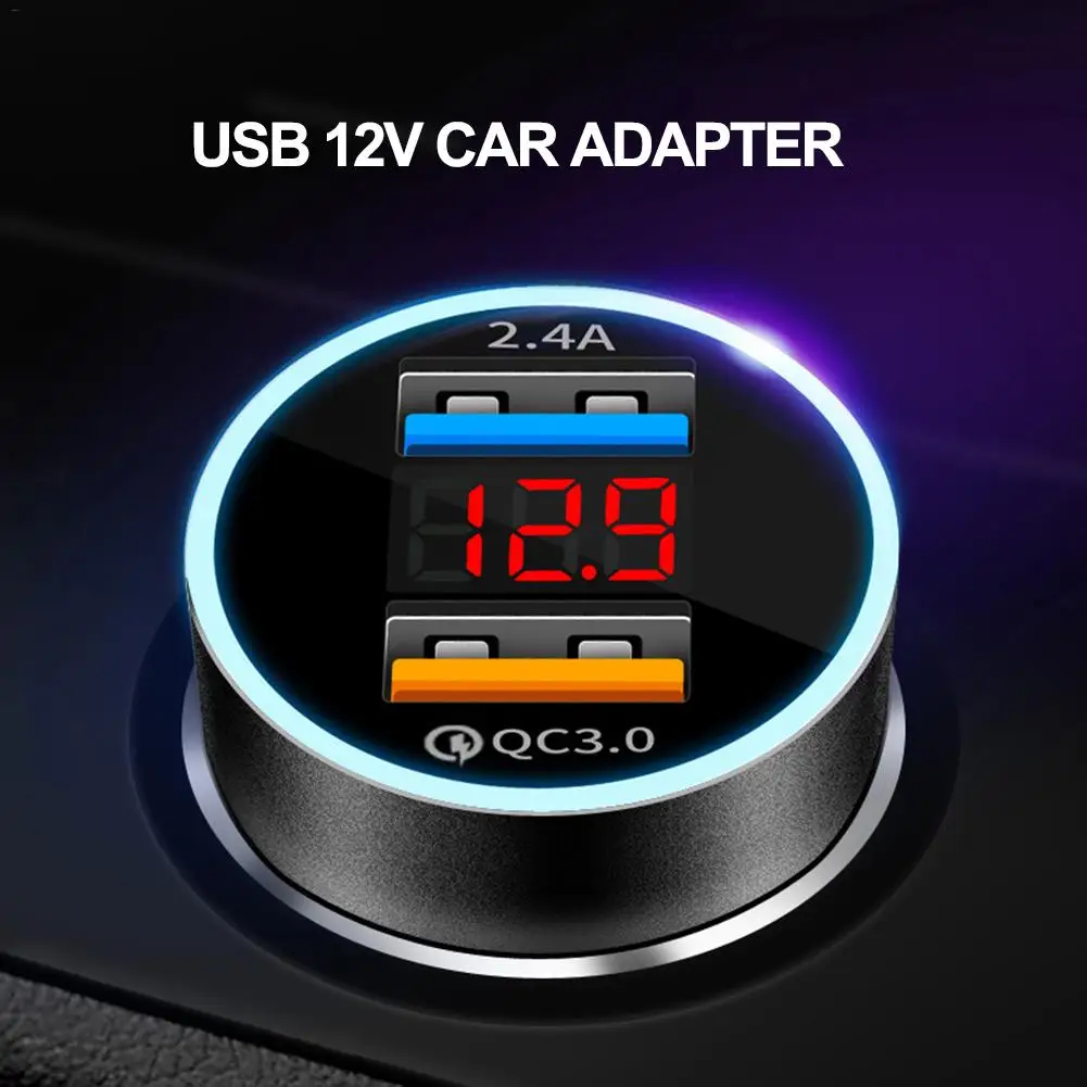 Автомобильное зарядное устройство на 12-14 в, 3,0 А, быстрая зарядка, QC, двойной USB-порт, цифровой дисплей, автомобильный адаптер для сотового телефона, прикуриватель, автомобильное зарядное устройство