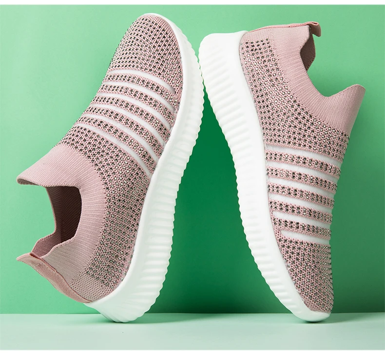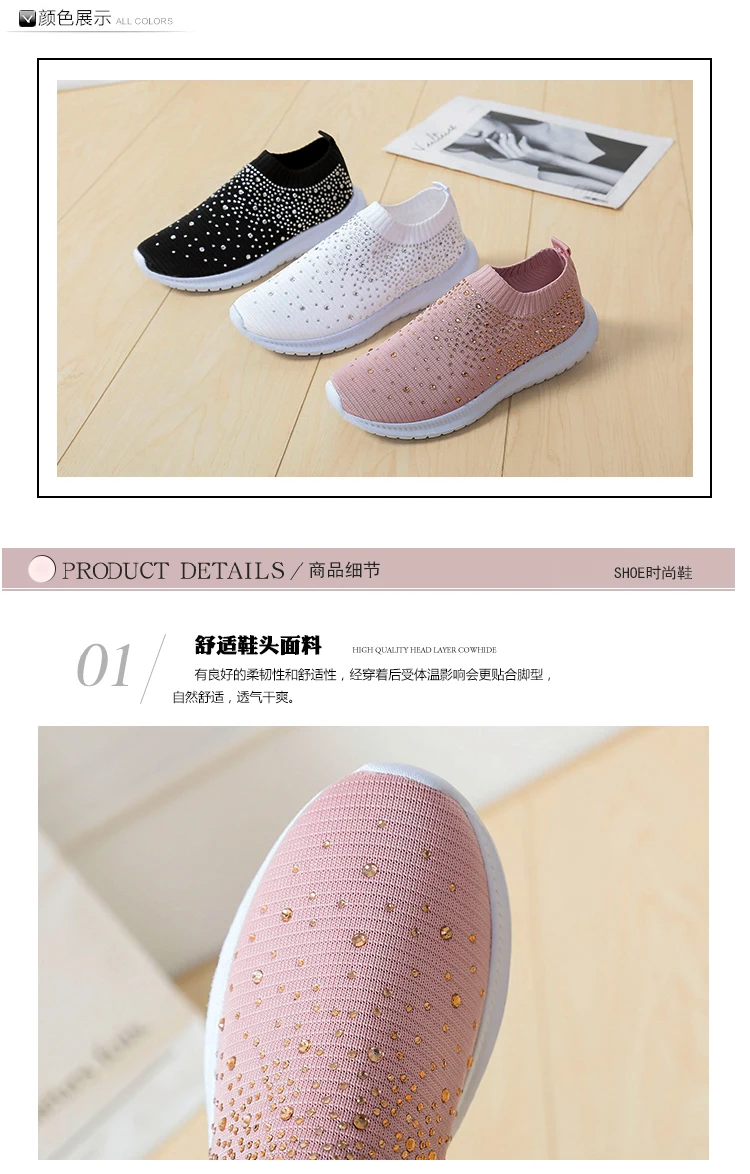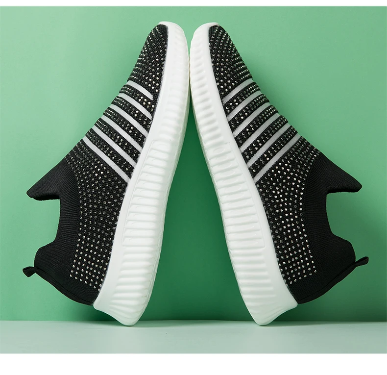 Женские модные кроссовки; Роскошный украшенный стразами носок обувь...