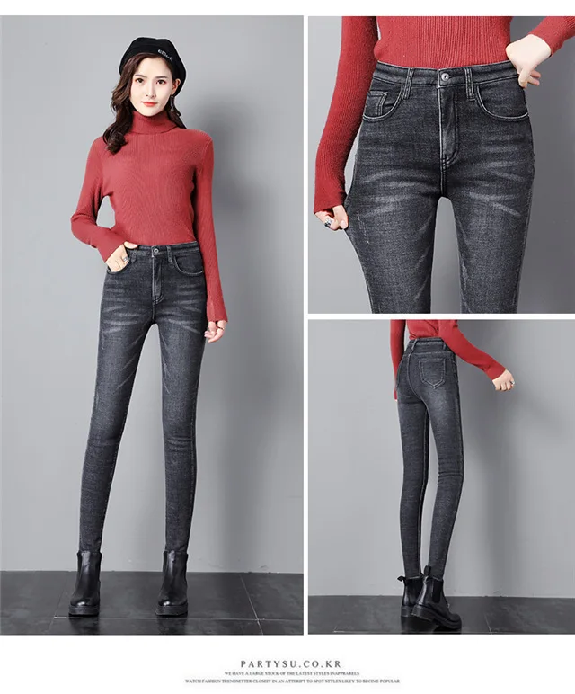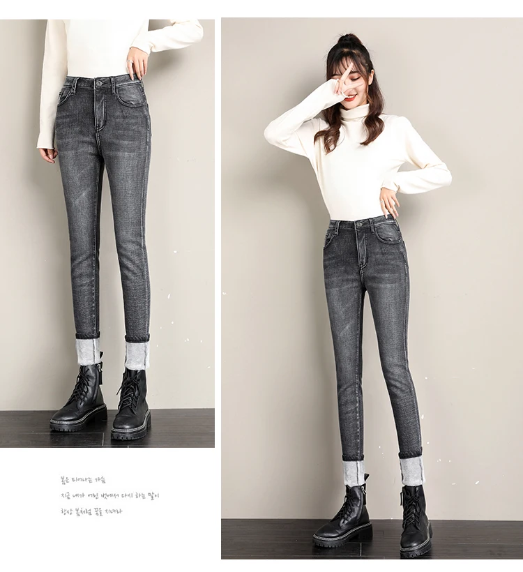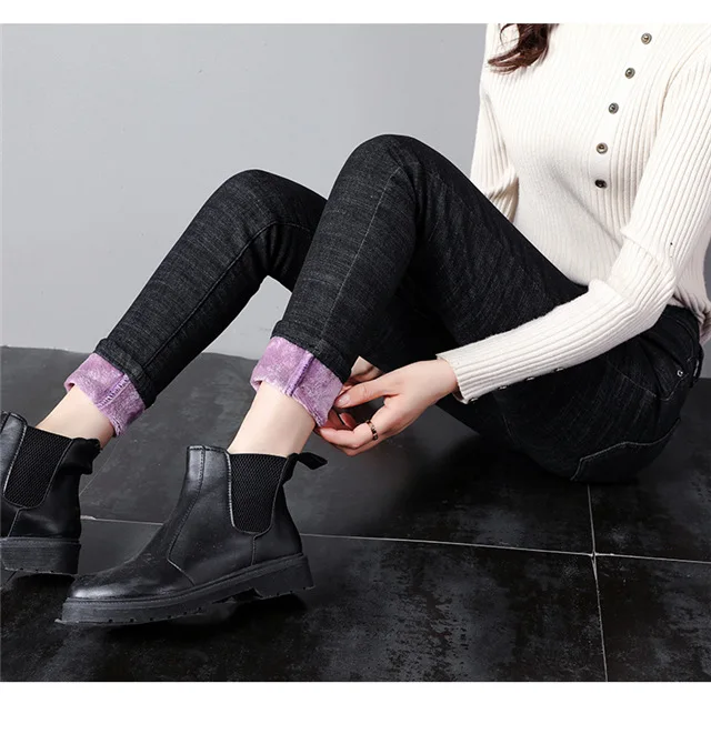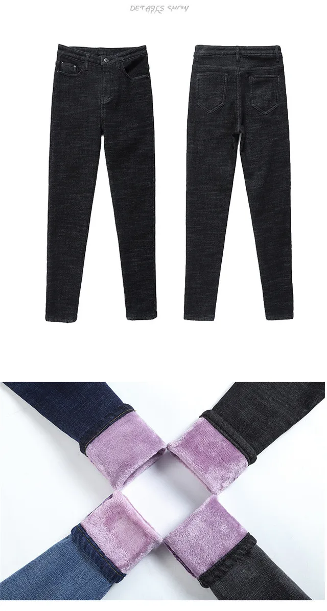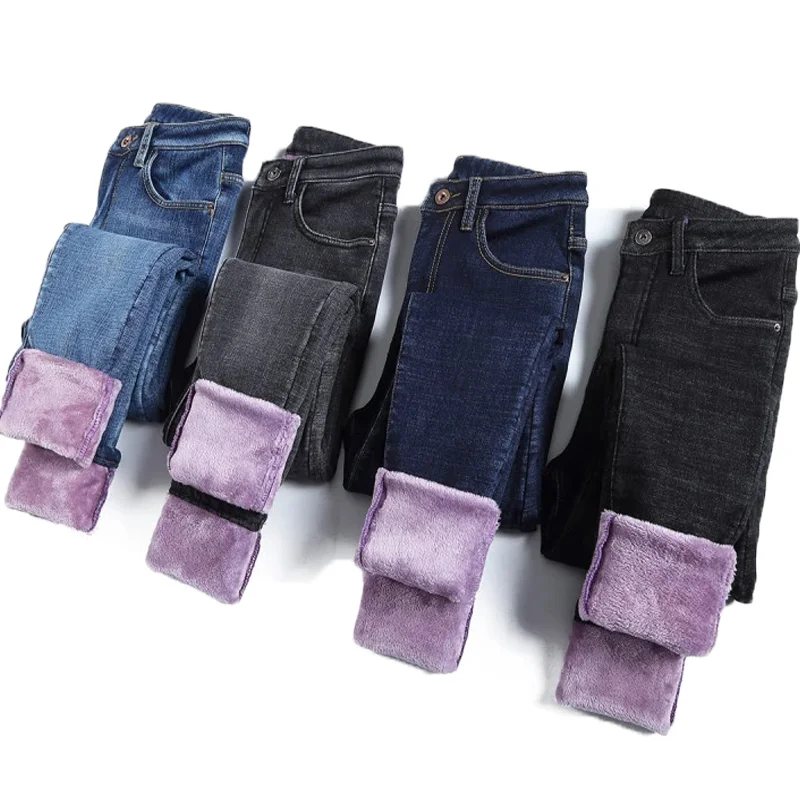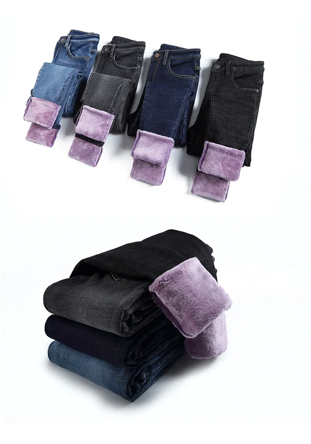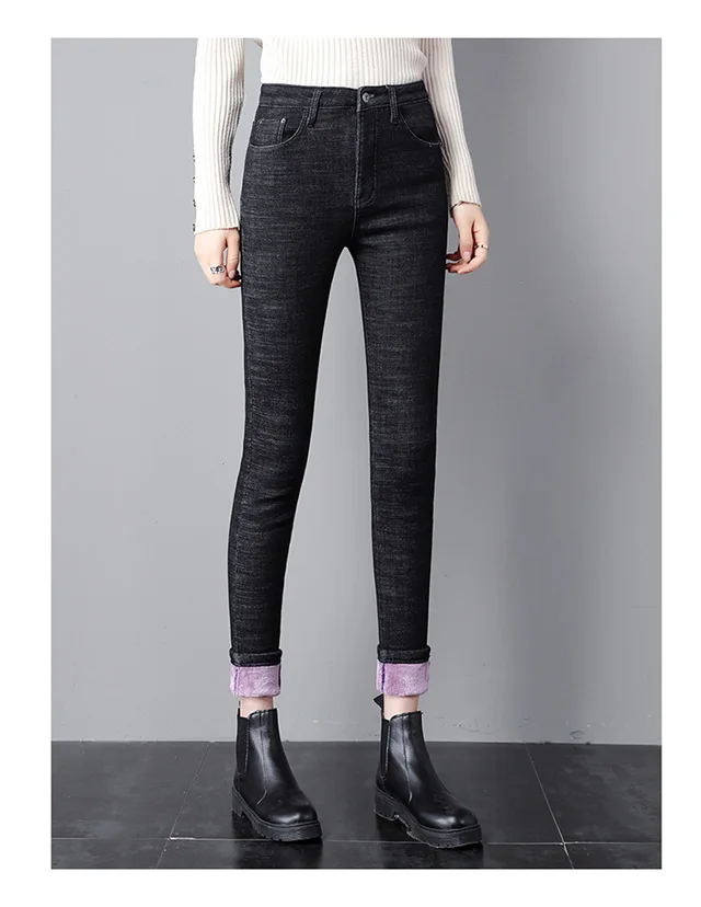 Зимняя женская одежда из бархата, фиолетовые флисовые джинсы для женщин, зимние Новые однотонные классические узкие брюки-карандаш для женщин