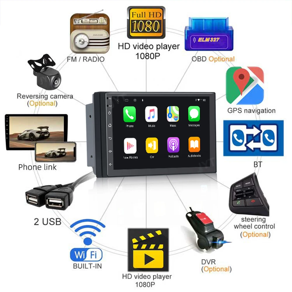 Автомагнитола PEERCE, мультимедийный плеер на Android 10, с сенсорным экраном 7 дюймов, 2 Din, стерео, с Mirror Link