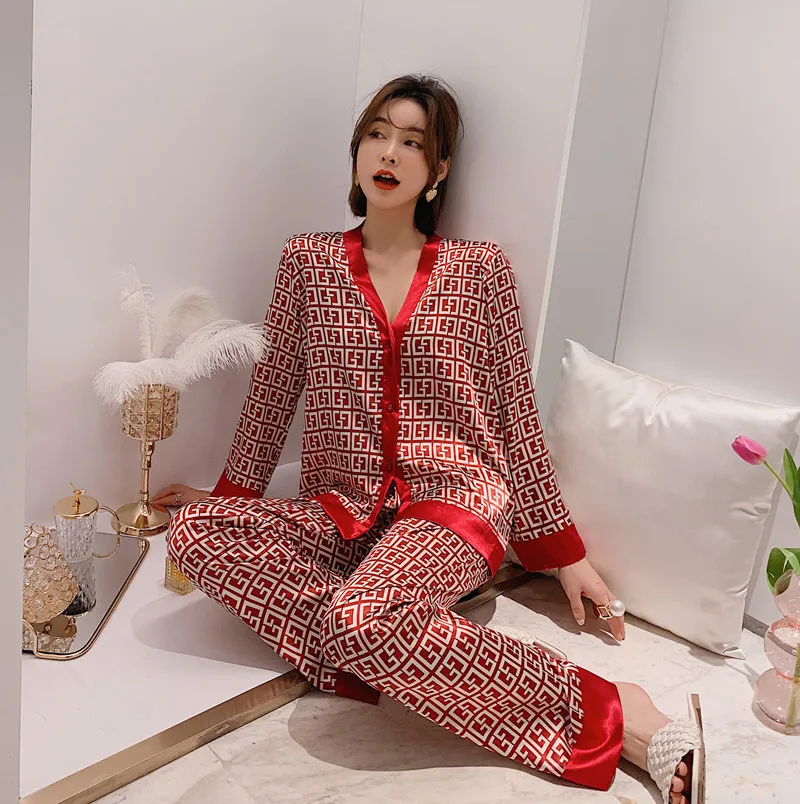 Пижамный комплект женский с V-образным вырезом, роскошная одежда для сна с надписью, шелковая Домашняя одежда, ночное белье большого размера XXL, домашняя одежда