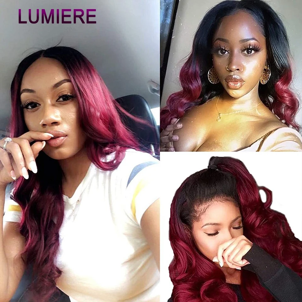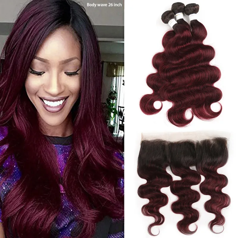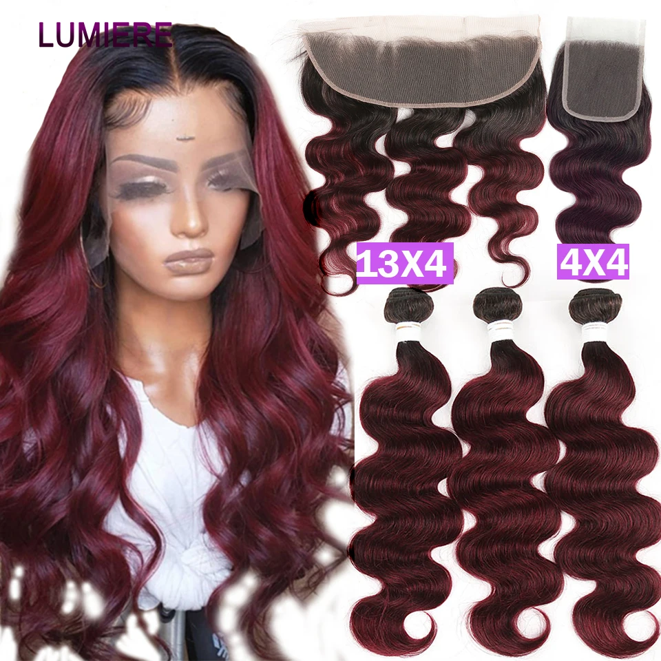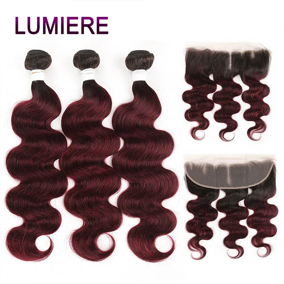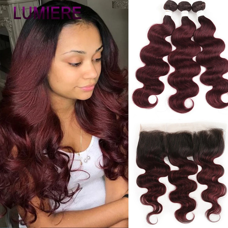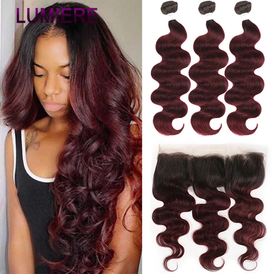 Волнистые пучки с эффектом омбре 1b99J, с застежкой, бразильские волосы Омбре, пучки с застежкой, пучка человеческих волос с передней частью