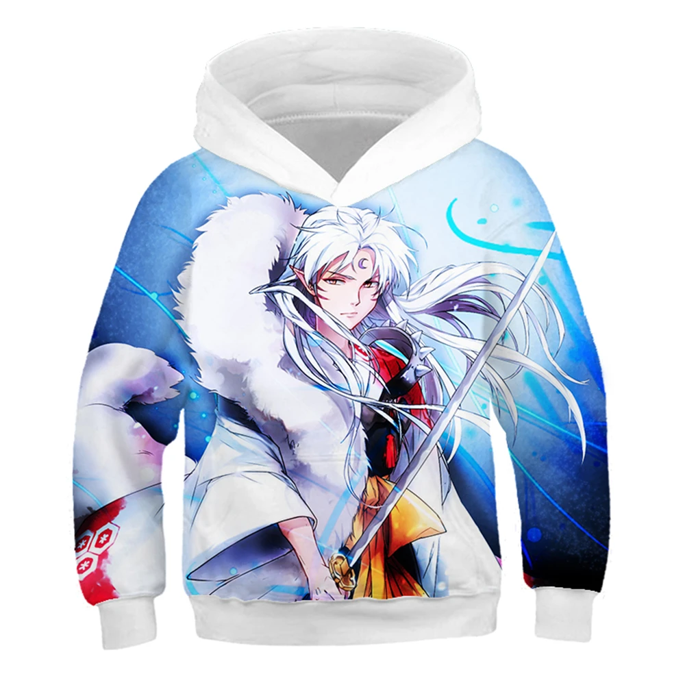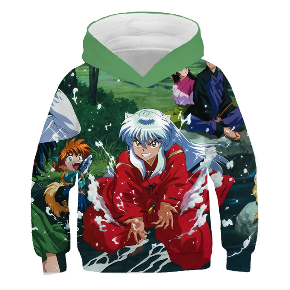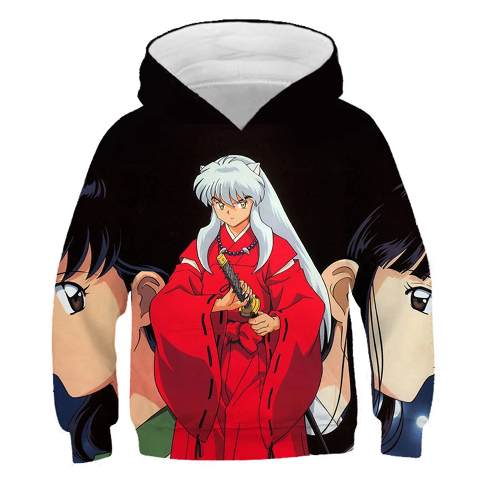 Толстовка с капюшоном Inuyasha в стиле классического аниме, пальто в японском стиле Харадзюку, топы, худи с большими карманами для мальчиков, спортивная одежда с 3d принтом, одежда для детей и подростков